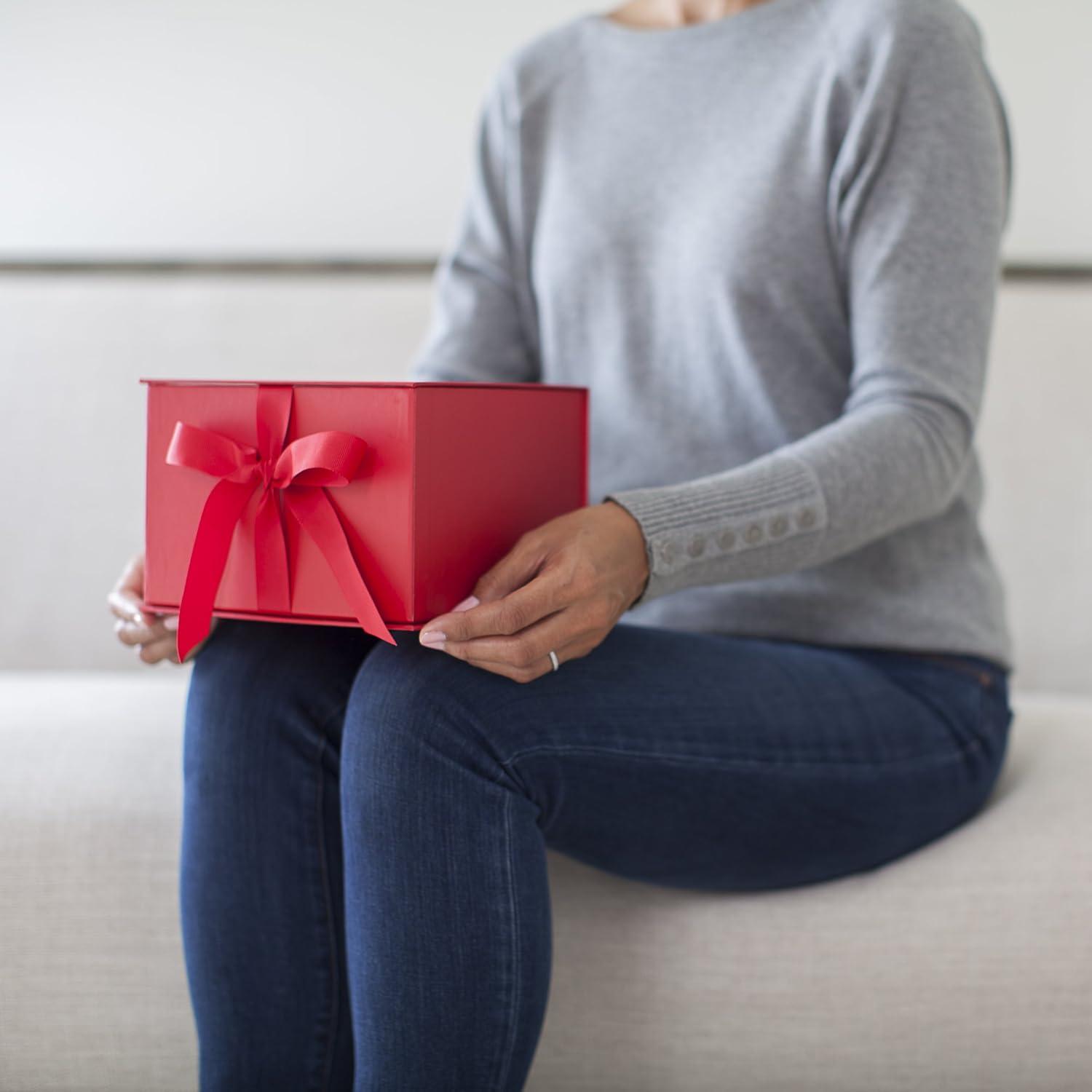 Hallmark Medium Gift Box with Lid and Shredded Paper Fill (Grey White 7 inch Box) for Weddings, Bridal Showers, Graduations, Birthdays, Bridesmaids Gifts, All Occasion(Red)