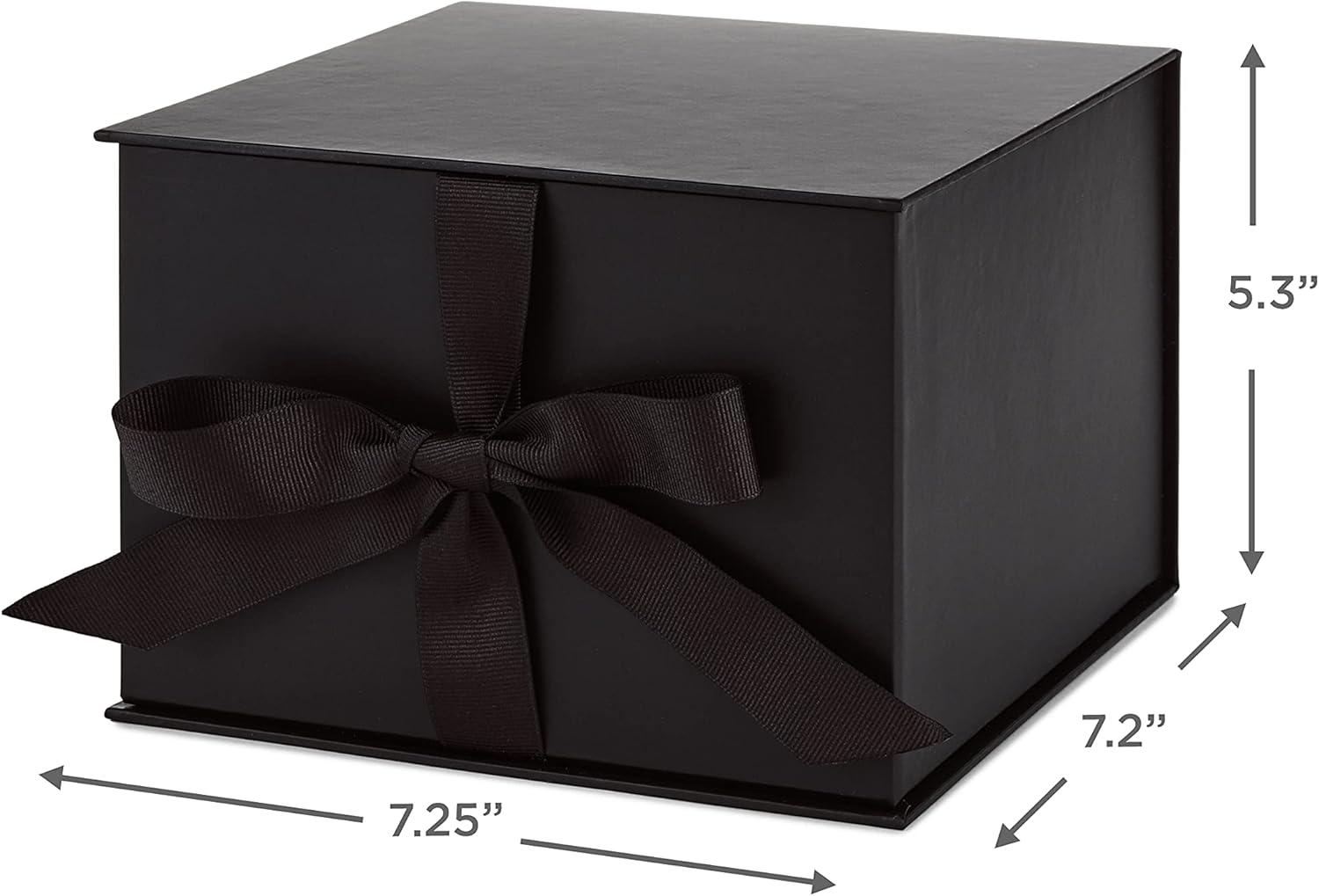 Hallmark Medium Gift Box with Lid and Shredded Paper Fill (Grey White 7 inch Box) for Weddings, Bridal Showers, Graduations, Birthdays, Bridesmaids Gifts, All Occasion(Black)
