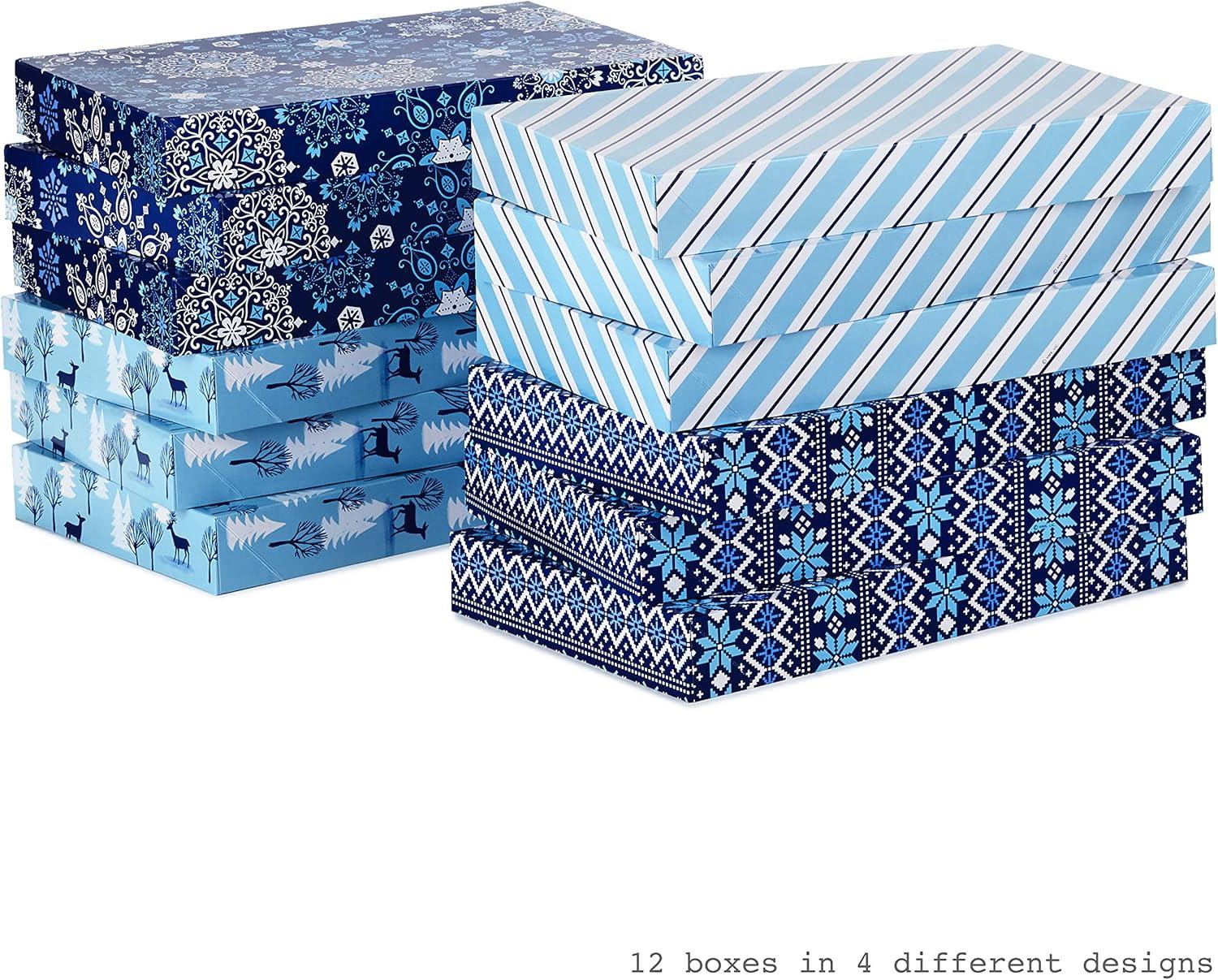 Hallmark Medium Holiday Gift Boxes with Lids (12 Shirt Boxes, 4 Designs: Snowflakes, Stripes, Sweater Pattern, Reindeer) for Christmas, Hanukkah, Holiday Parties, Hostess Gifts(1 Count (Pack of 12))