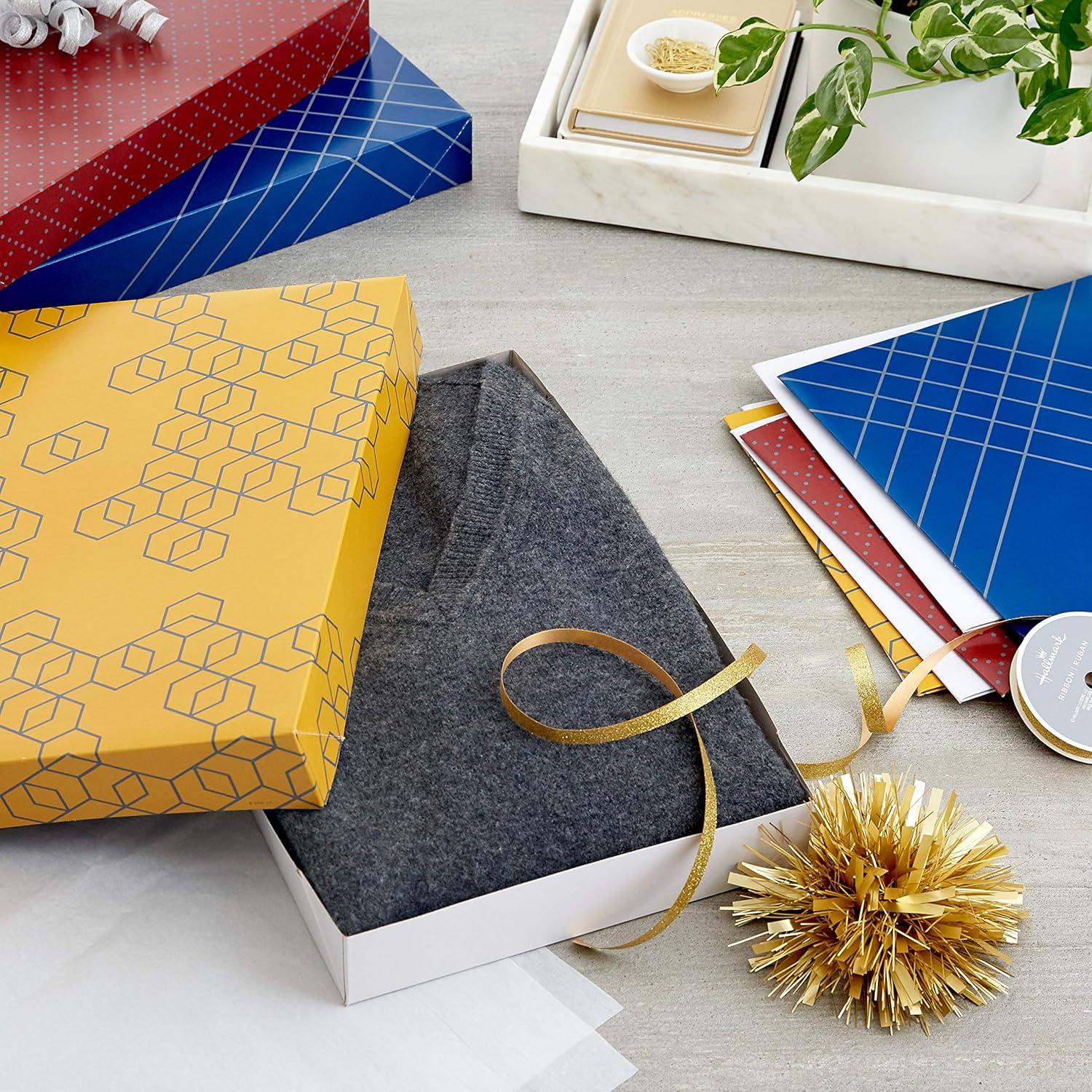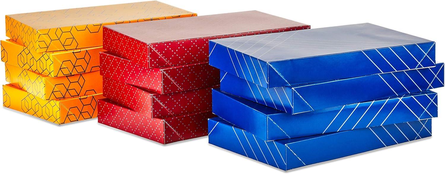 Hallmark Red and Green Christmas Gift Box Assortment (12 Boxes with Scalloped Lids: 4 Small, 4 Medium, 4 Large) for Ties, Socks, Shirts, Sweaters(Blue Yellow Red)