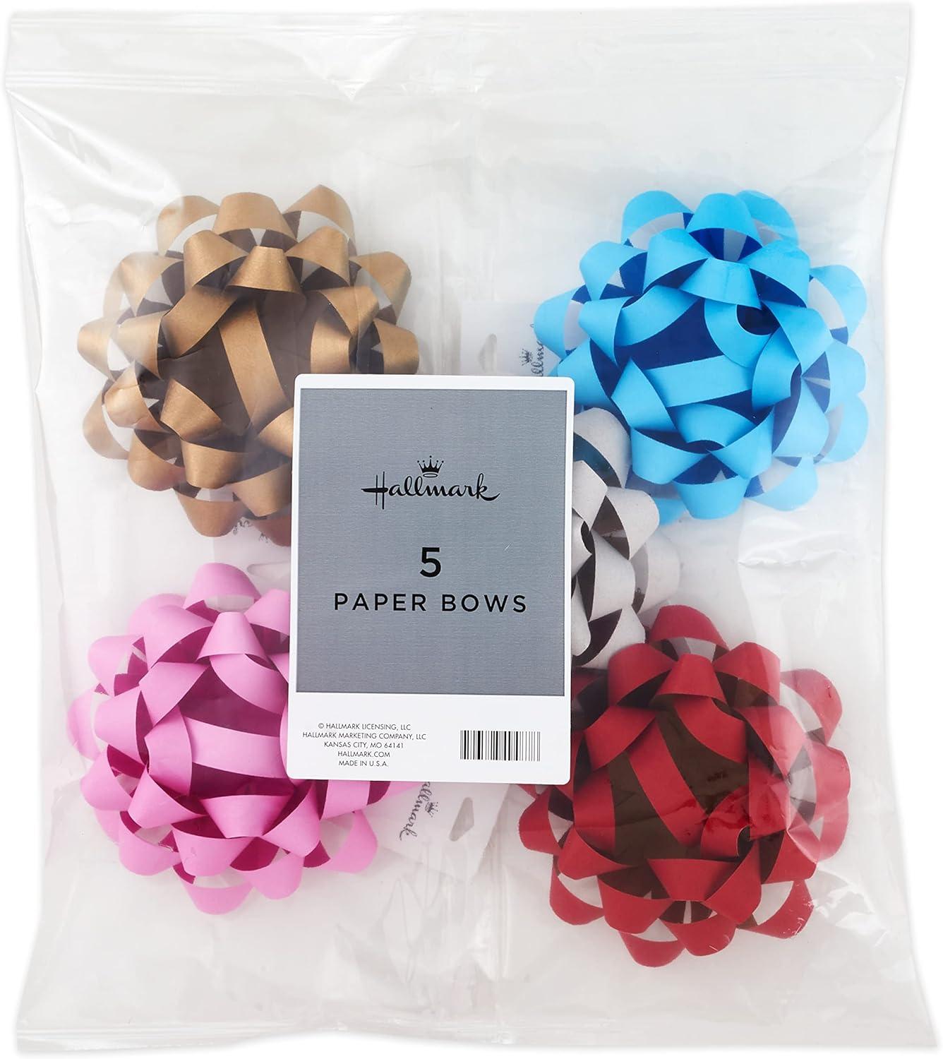 Hallmark Kraft Paper Gift Bows (5 Bows: Gold, White, Blue, Red, Pink) for Birthdays, Graduations, Baby Showers, Presents and More(Red White Pink Blue Yellow Silver Gold)