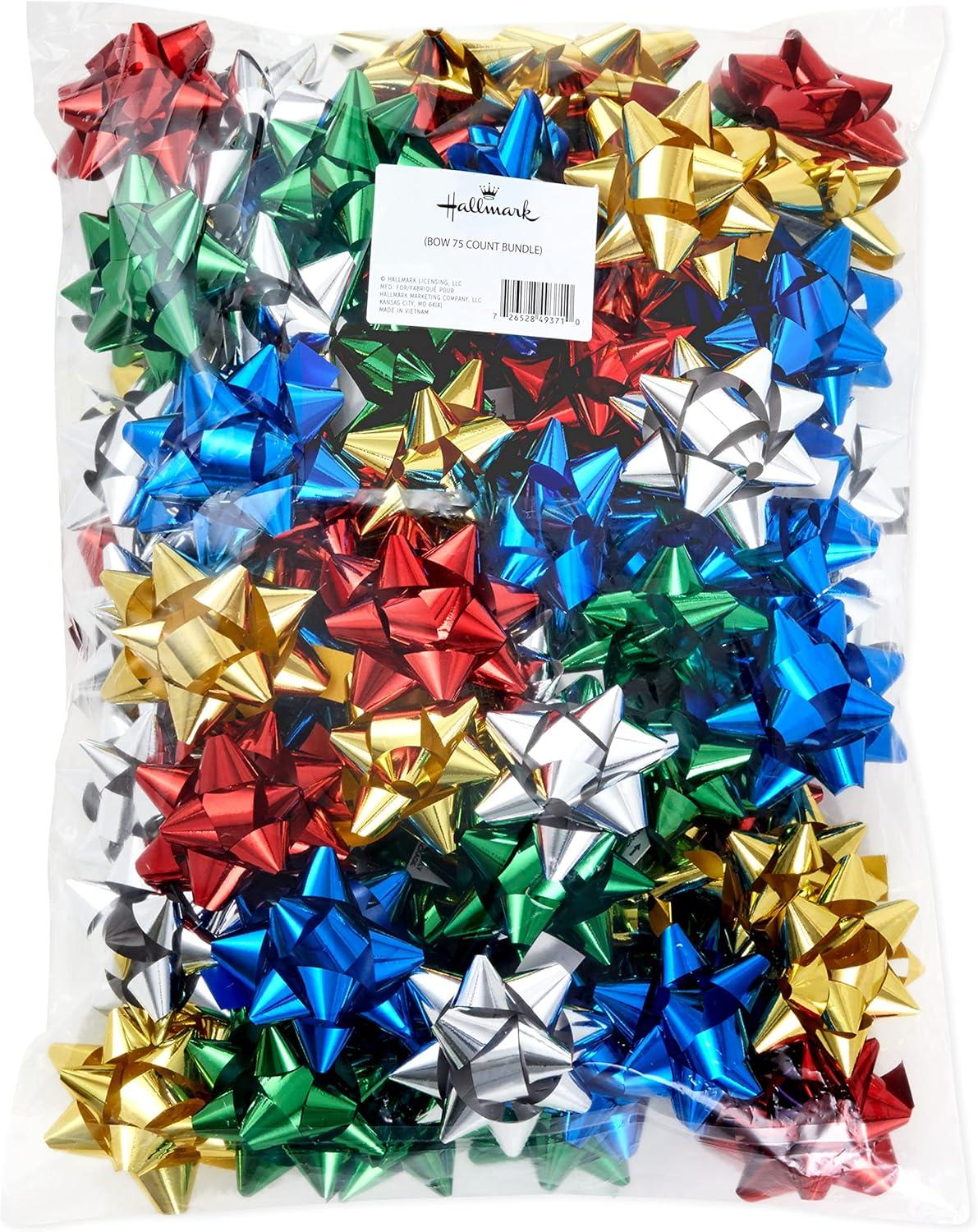 Hallmark Kraft Paper Gift Bows (5 Bows: Gold, White, Blue, Red, Pink) for Birthdays, Graduations, Baby Showers, Presents and More(Red Gold Green Silver Blue)