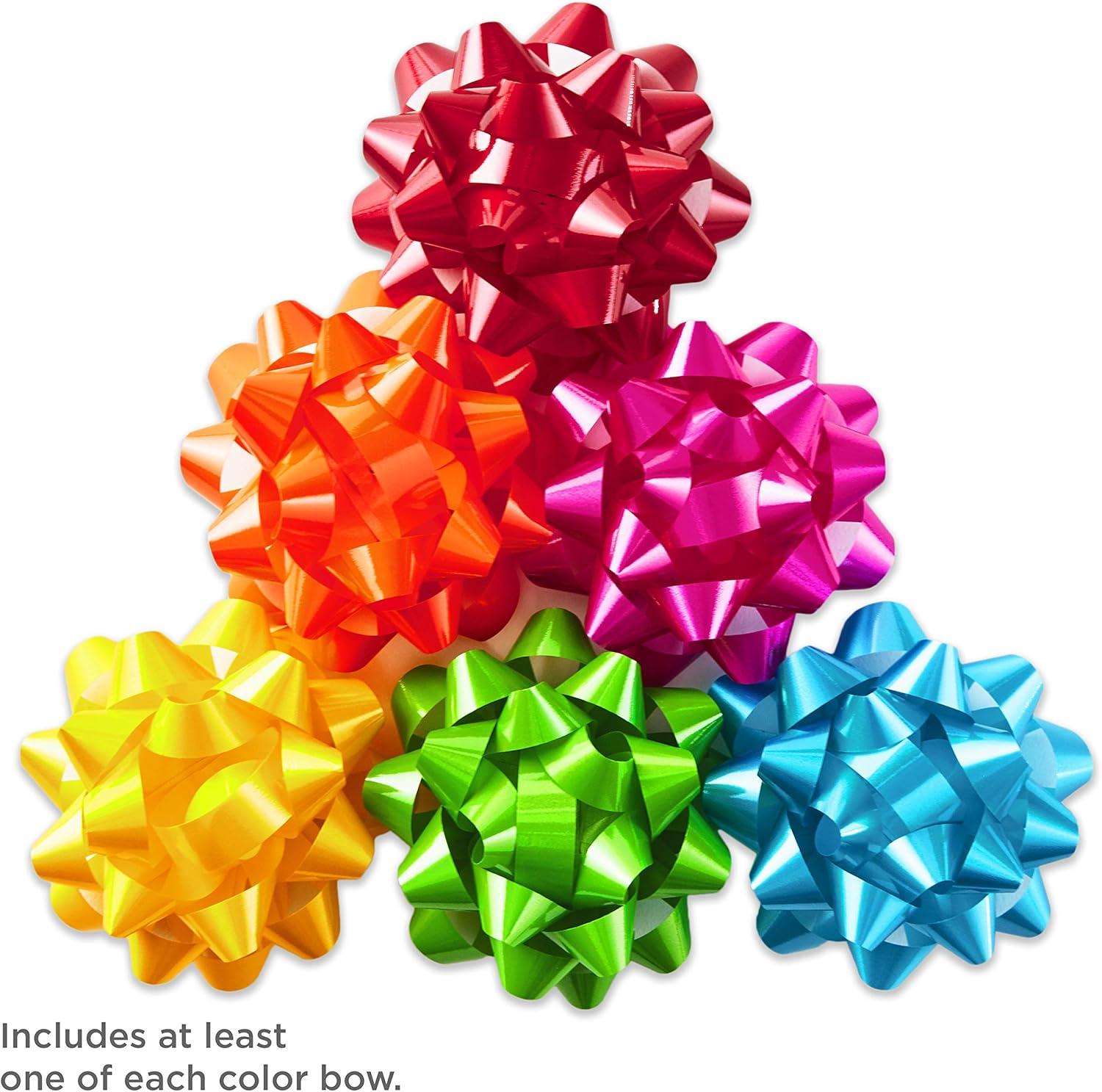 Hallmark Kraft Paper Gift Bows (5 Bows: Gold, White, Blue, Red, Pink) for Birthdays, Graduations, Baby Showers, Presents and More(Red Pink Orange Green Teal Yellow)