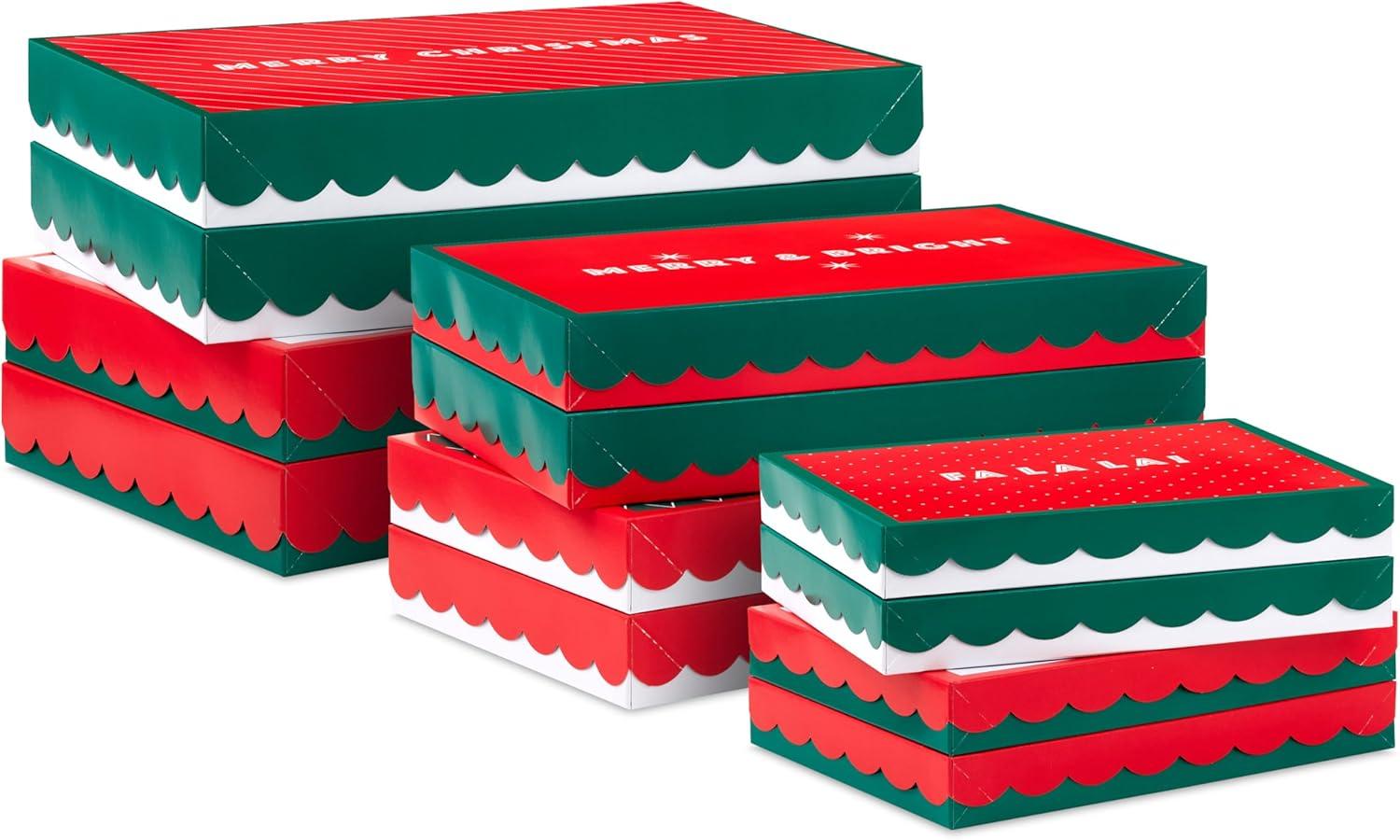 Hallmark Red and Green Christmas Gift Box Assortment (12 Boxes with Scalloped Lids: 4 Small, 4 Medium, 4 Large) for Ties, Socks, Shirts, Sweaters(Red and Green Christmas)