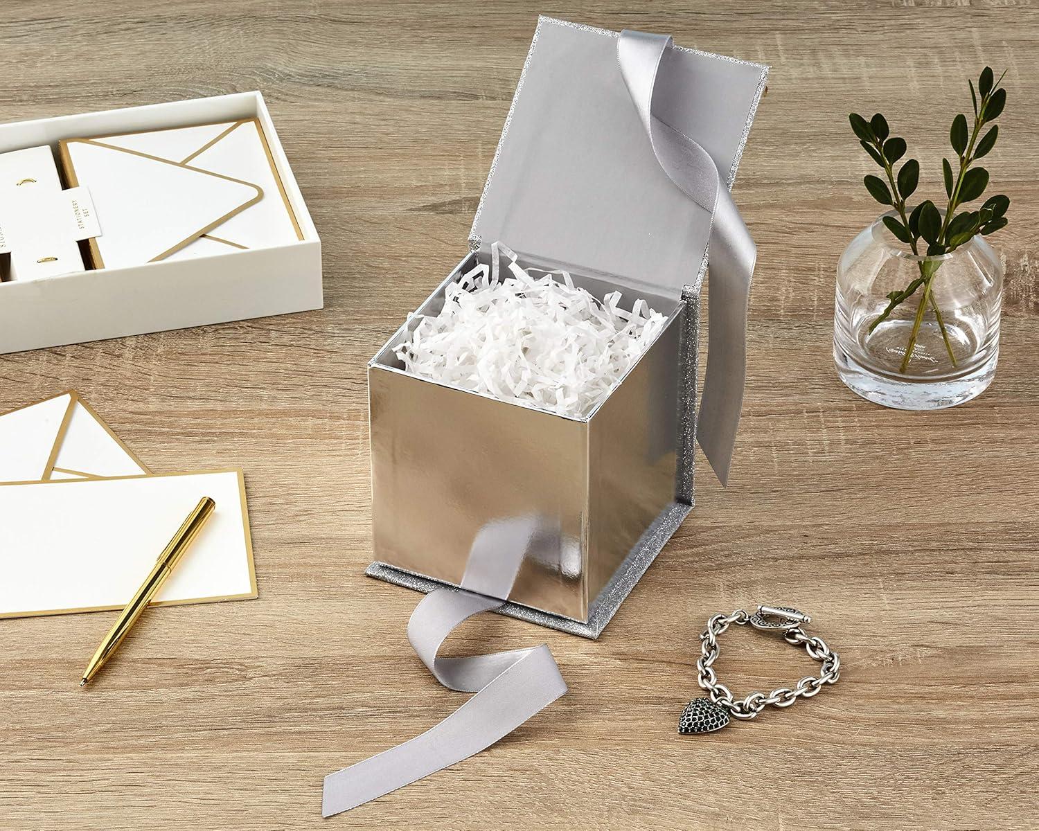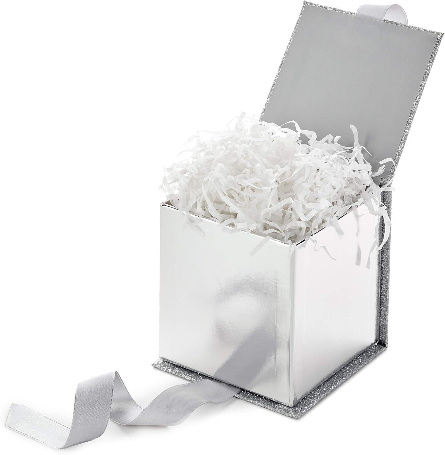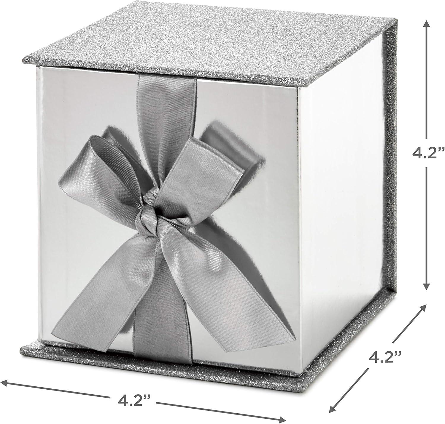 Hallmark Small Gift Box with Bow and Shredded Paper Filll (Navy Blue Signature 4 inch Gift Box with Glitter) for Birthdays, Graduations, Anniversaries, Father’s Day, Christmas, Valentine’s Day, All Occasion(Silver Glitter)