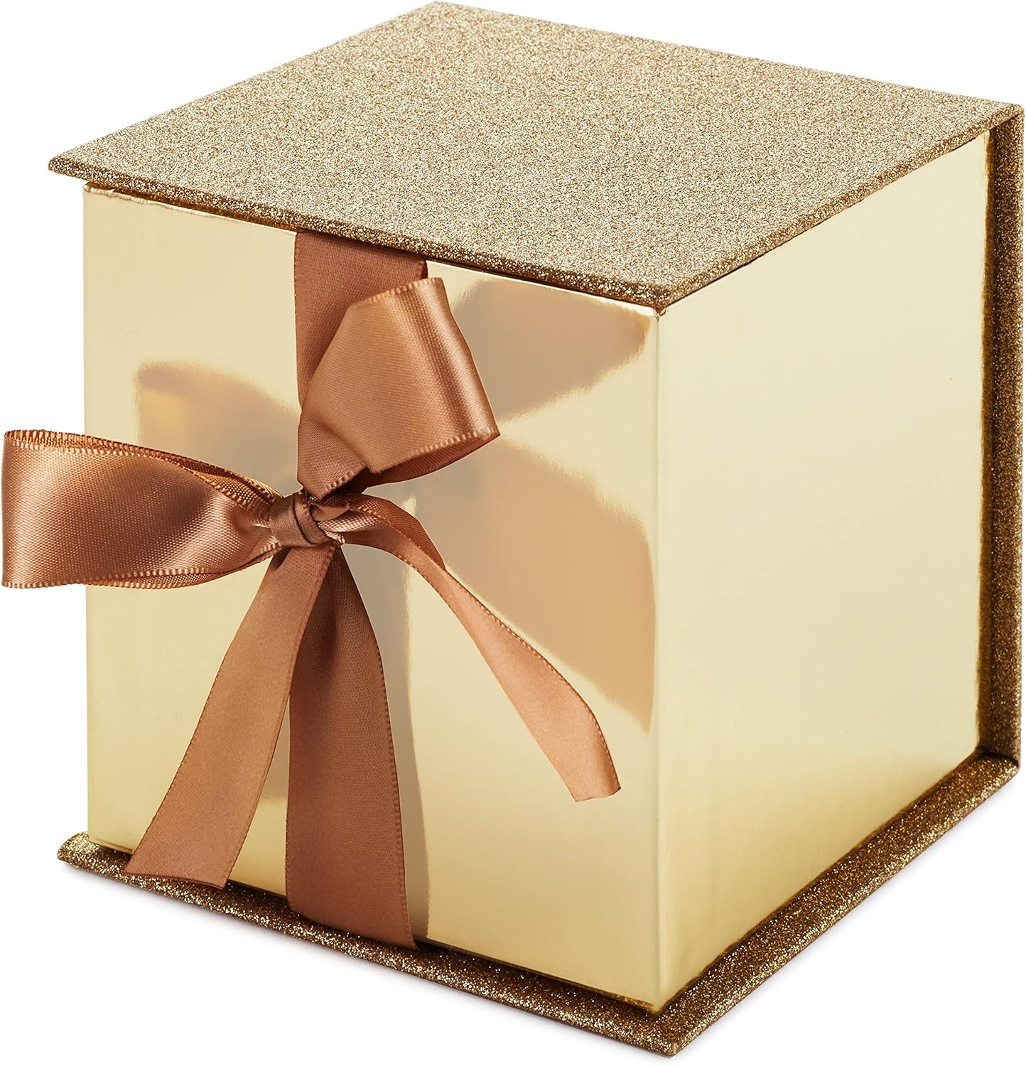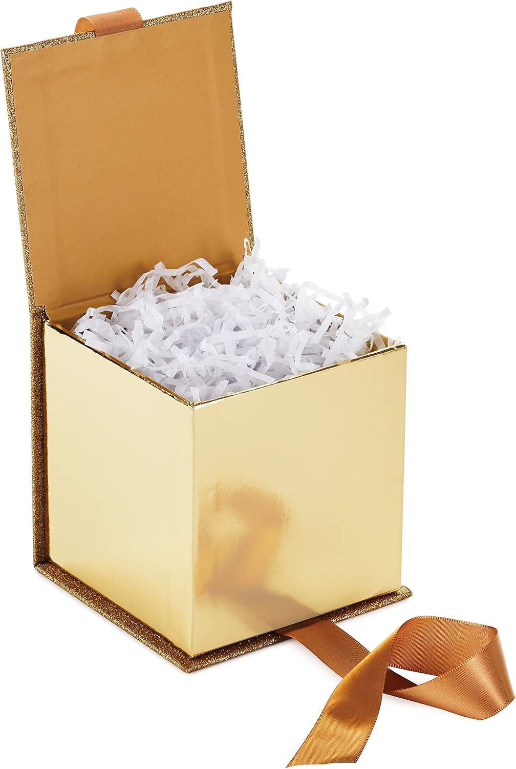 Hallmark Small Gift Box with Bow and Shredded Paper Filll (Navy Blue Signature 4 inch Gift Box with Glitter) for Birthdays, Graduations, Anniversaries, Father’s Day, Christmas, Valentine’s Day, All Occasion(Gold Glitter)