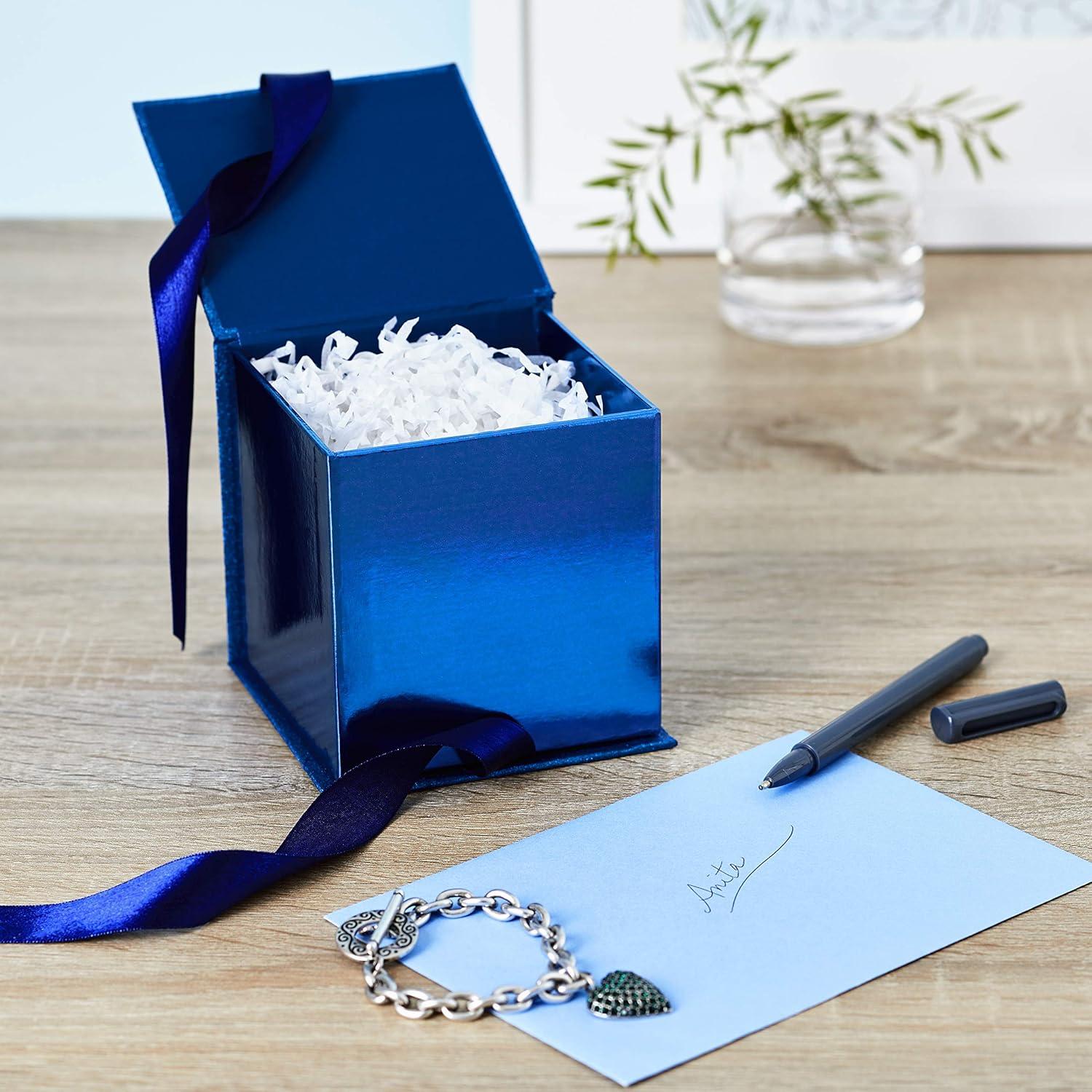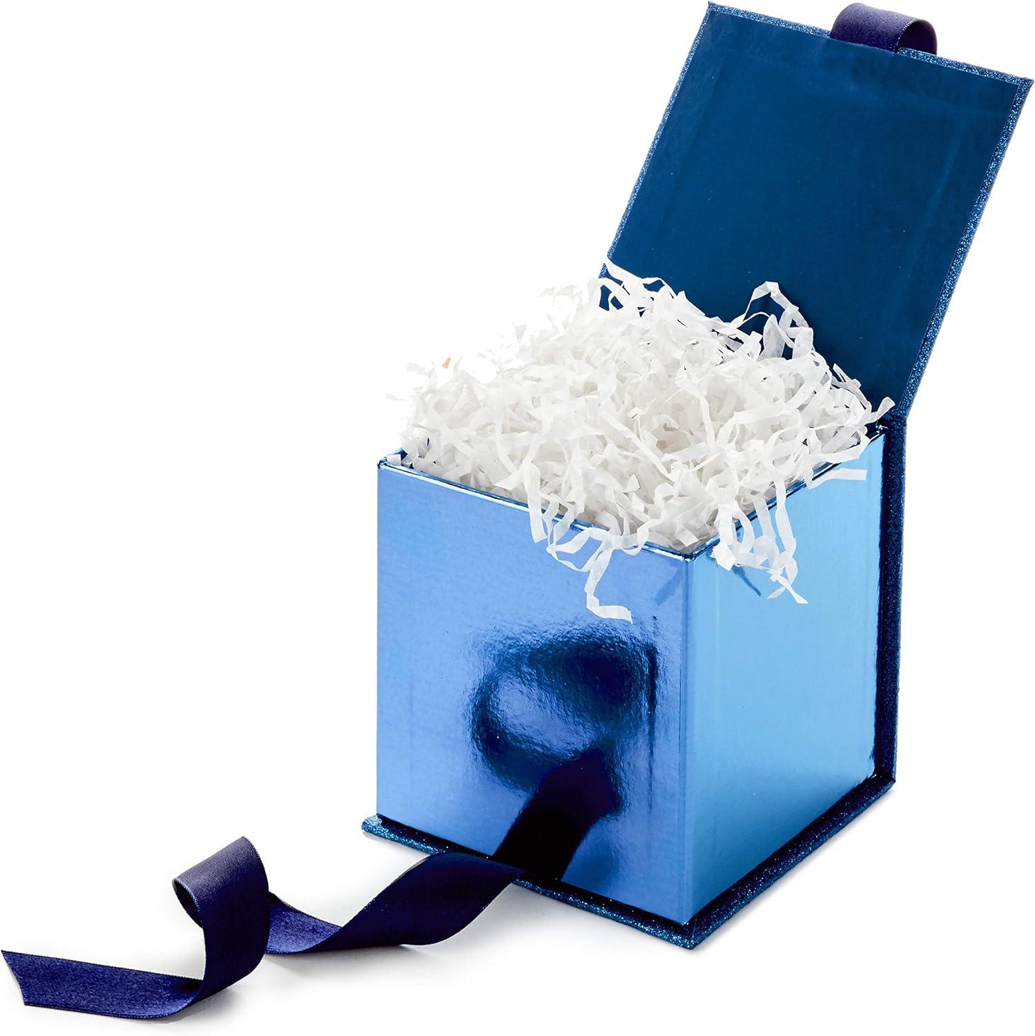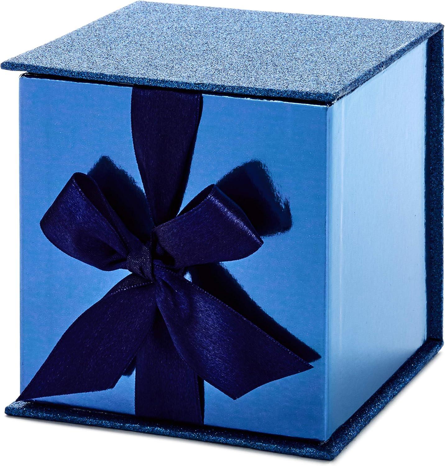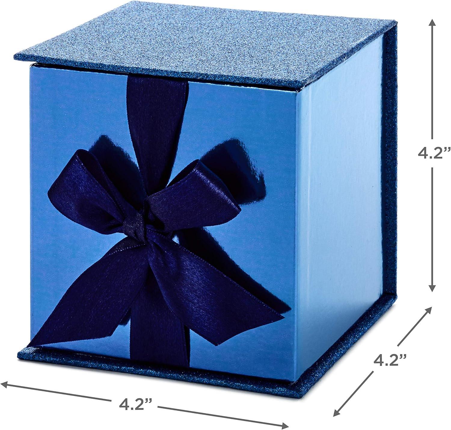 Hallmark Small Gift Box with Bow and Shredded Paper Filll (Navy Blue Signature 4 inch Gift Box with Glitter) for Birthdays, Graduations, Anniversaries, Father’s Day, Christmas, Valentine’s Day, All Occasion(Navy Blue Glitter)