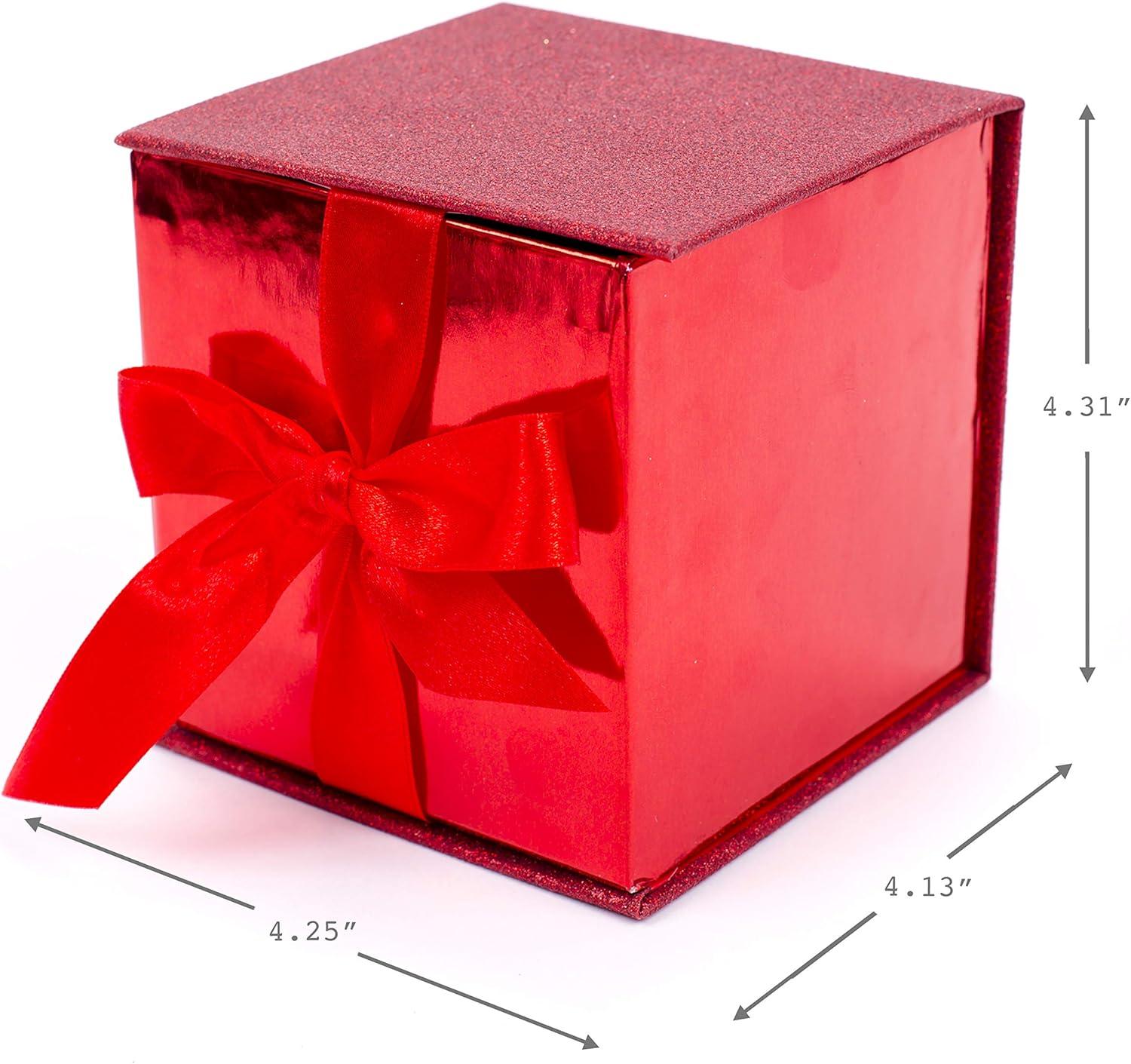 Hallmark Small Gift Box with Bow and Shredded Paper Filll (Navy Blue Signature 4 inch Gift Box with Glitter) for Birthdays, Graduations, Anniversaries, Father’s Day, Christmas, Valentine’s Day, All Occasion(Red Glitter)