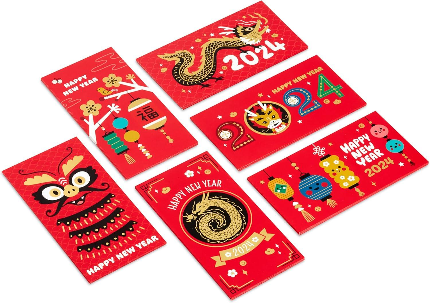 Hallmark Eight Bamboo 2024 Chinese New Year Money or Gift Card Holders for Kids (36 Year of the Dragon Red Envelopes)