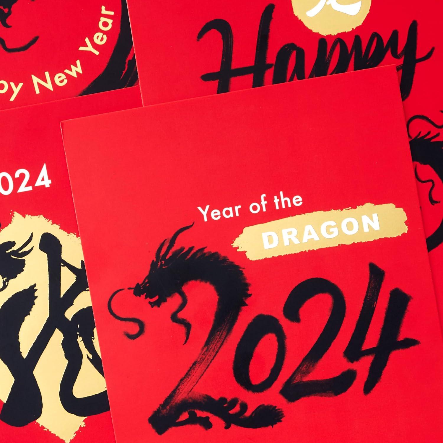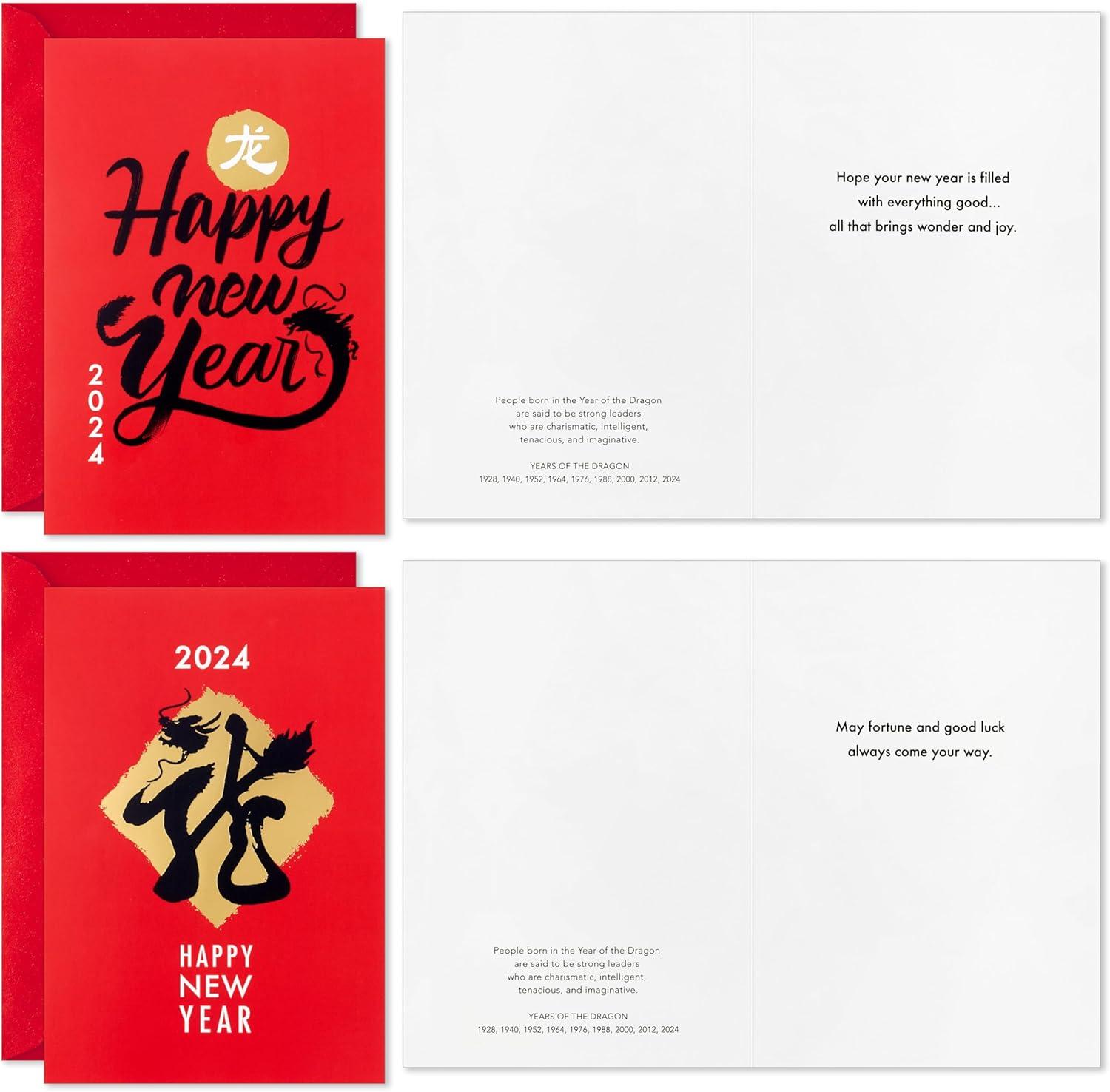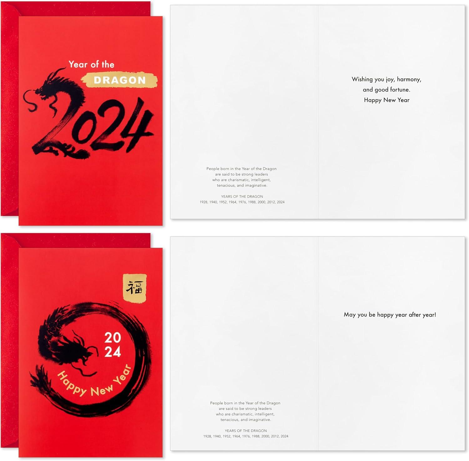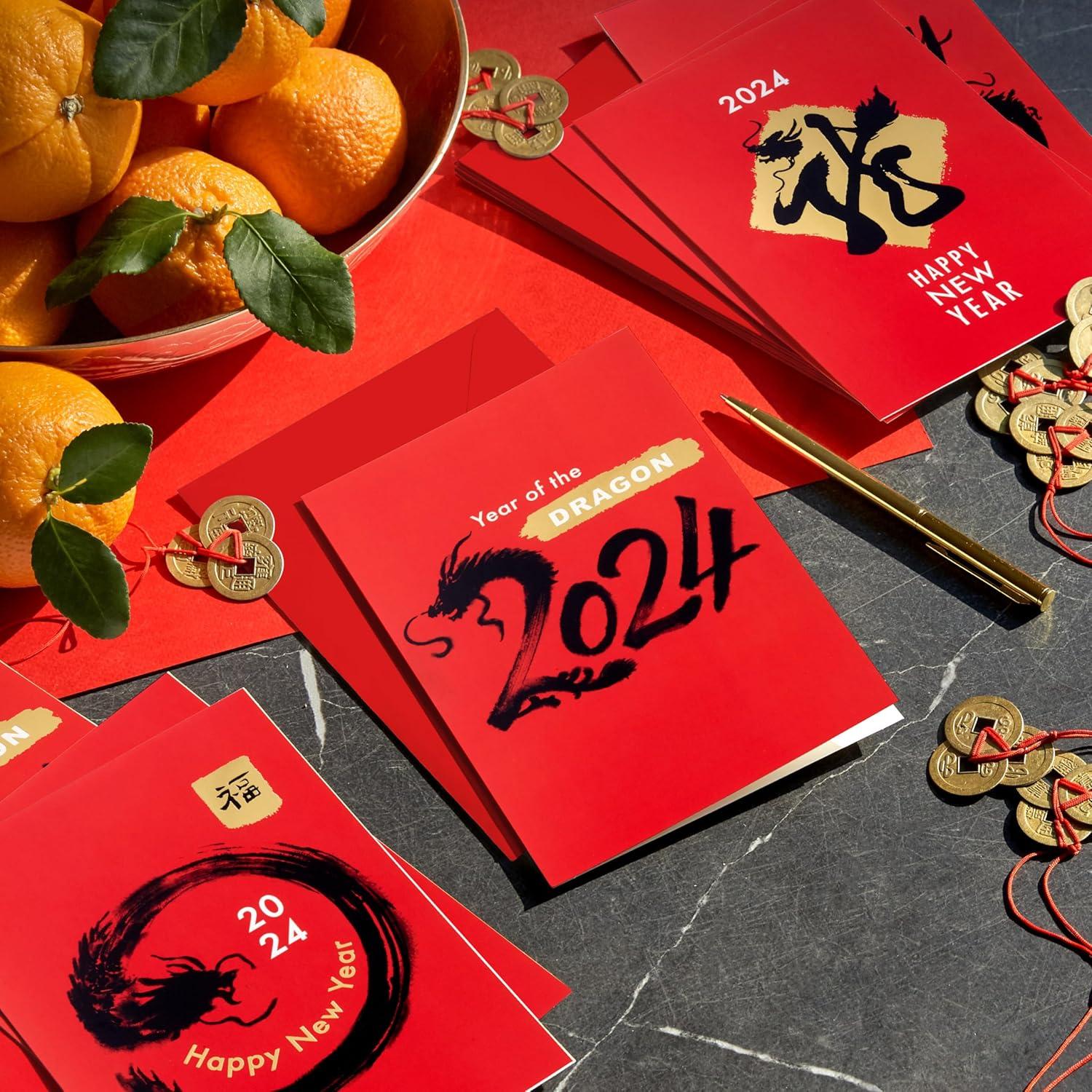 Hallmark Eight Bamboo 2024 Dated Chinese New Year Card Assortment (16 Year of the Dragon Cards with Envelopes)