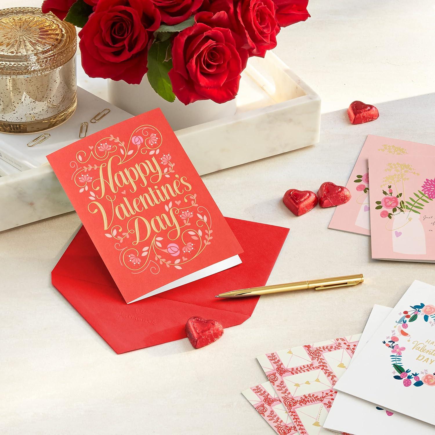 Hallmark Valentine’s Day Cards Assortment, 16 Cards with Envelopes (Floral Designs, Gold Foil Accented) for Adults