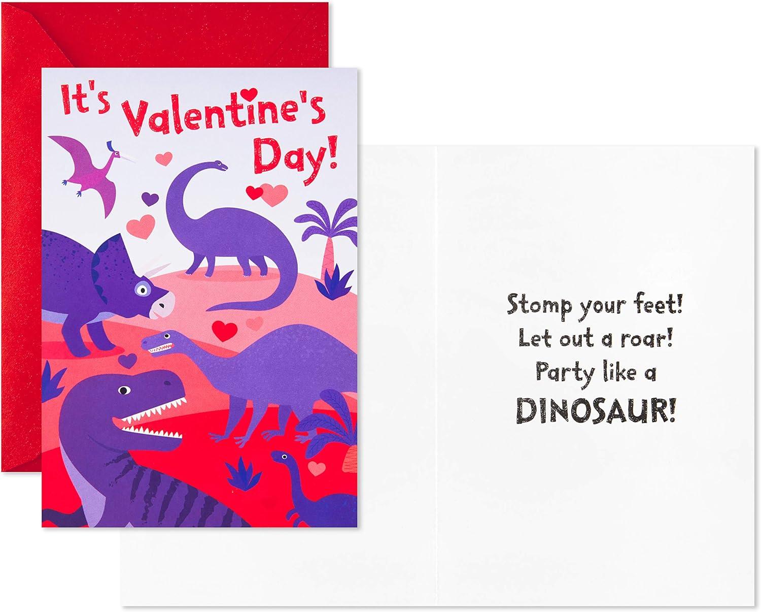 Hallmark Valentines Day Cards for Kids School, Dinosaurs (8 Classroom Valentines with Envelopes)(Purple and Red)