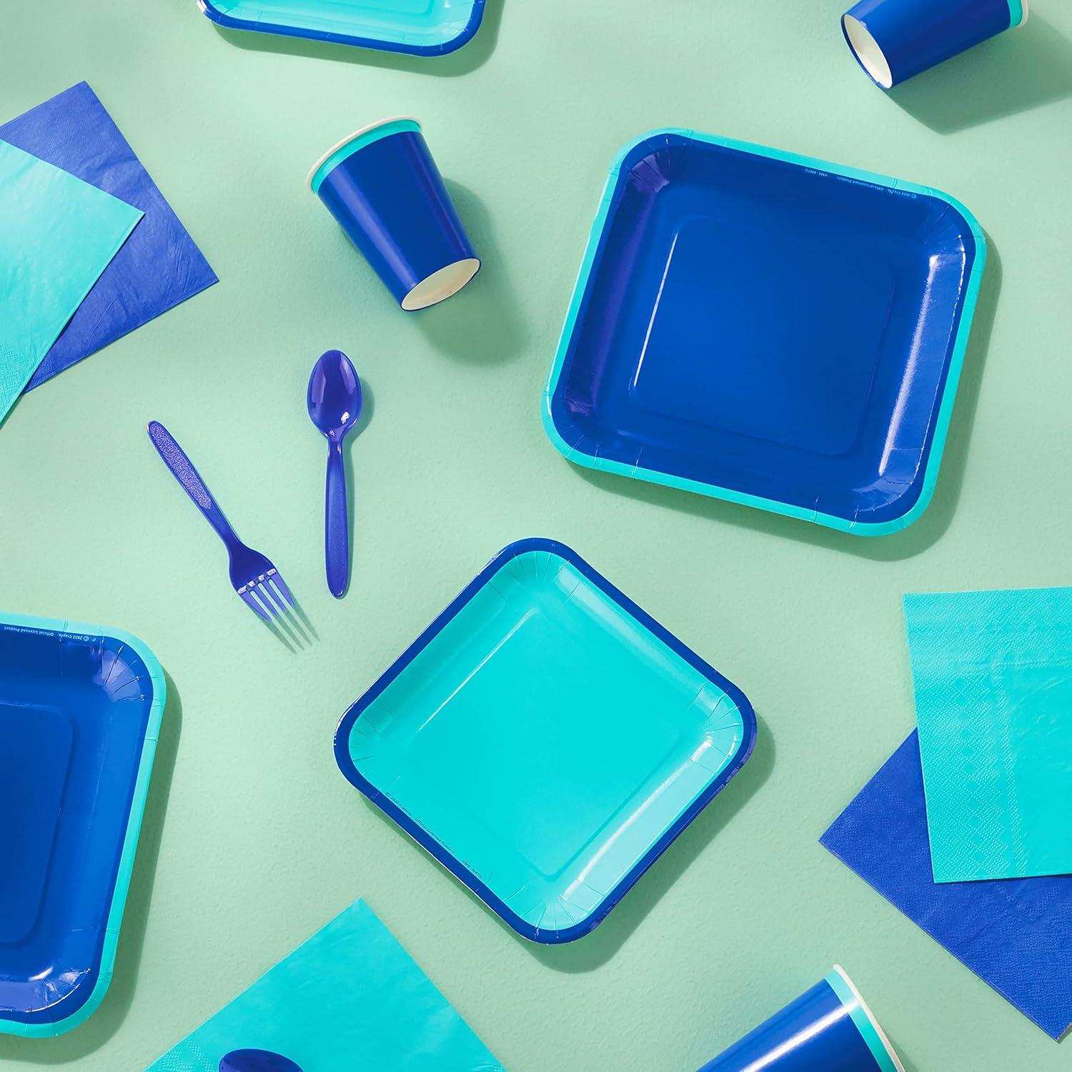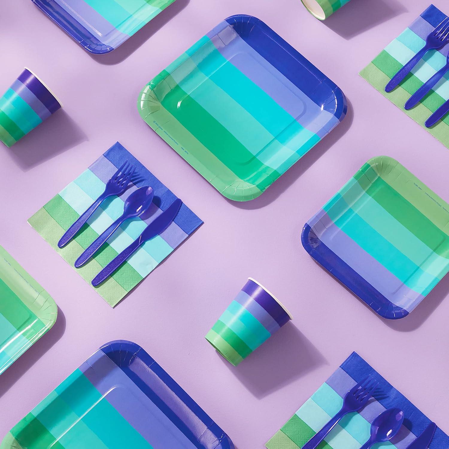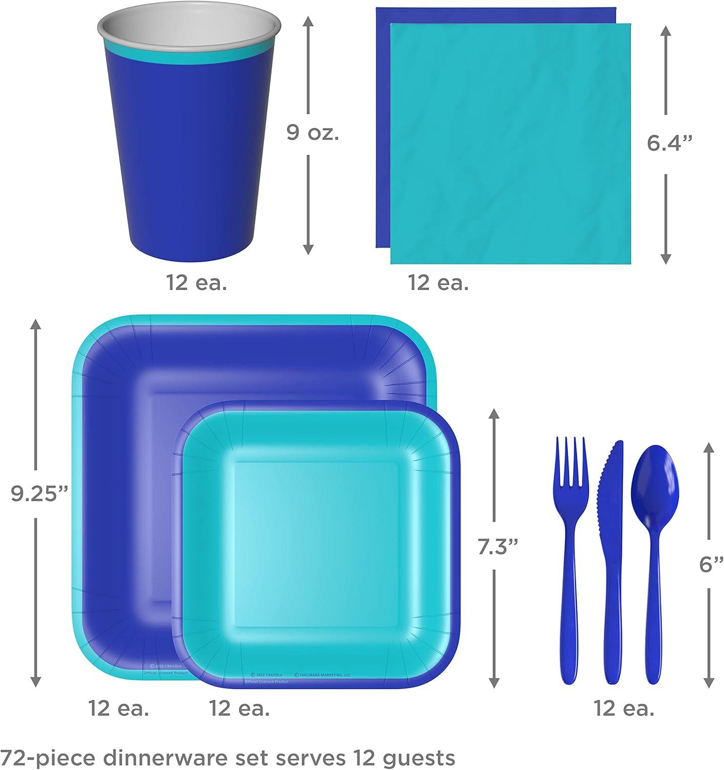 Hallmark Crayola Hallmark Color Pop Green and Blue Party Supplies (12 Dinner Plates, 12 Dessert Plates, 12 Paper Cups, 24 Napkins, 12 Sets of Plastic Cutlery) for Birthdays, Baby Showers, Father’s Day(Indigo Aquamarine Blue)