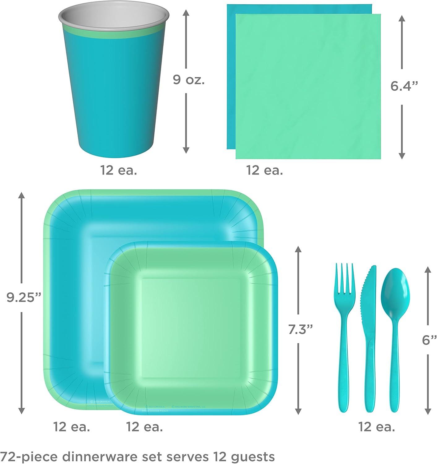 Hallmark Crayola Hallmark Color Pop Green and Blue Party Supplies (12 Dinner Plates, 12 Dessert Plates, 12 Paper Cups, 24 Napkins, 12 Sets of Plastic Cutlery) for Birthdays, Baby Showers, Father’s Day(Sea Green Aquamarine Blue)