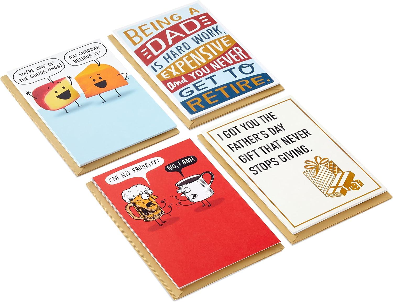 Hallmark Funny Father’s Day Cards Bulk, 16 Assorted Cards with Envelopes (Cheesy Dad Jokes) Humor Shoebox Cards for Dad, Stepdad, Bonus Dad, Uncle, Grandpa, Friend(Mother’s Day Humor Card Assortment)