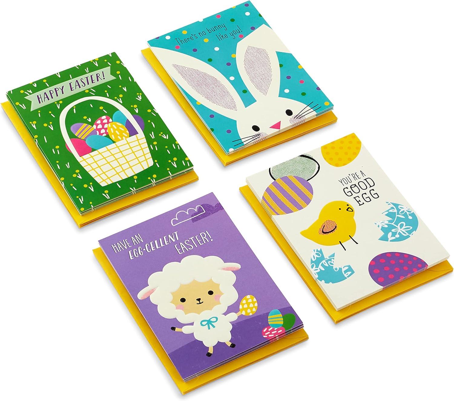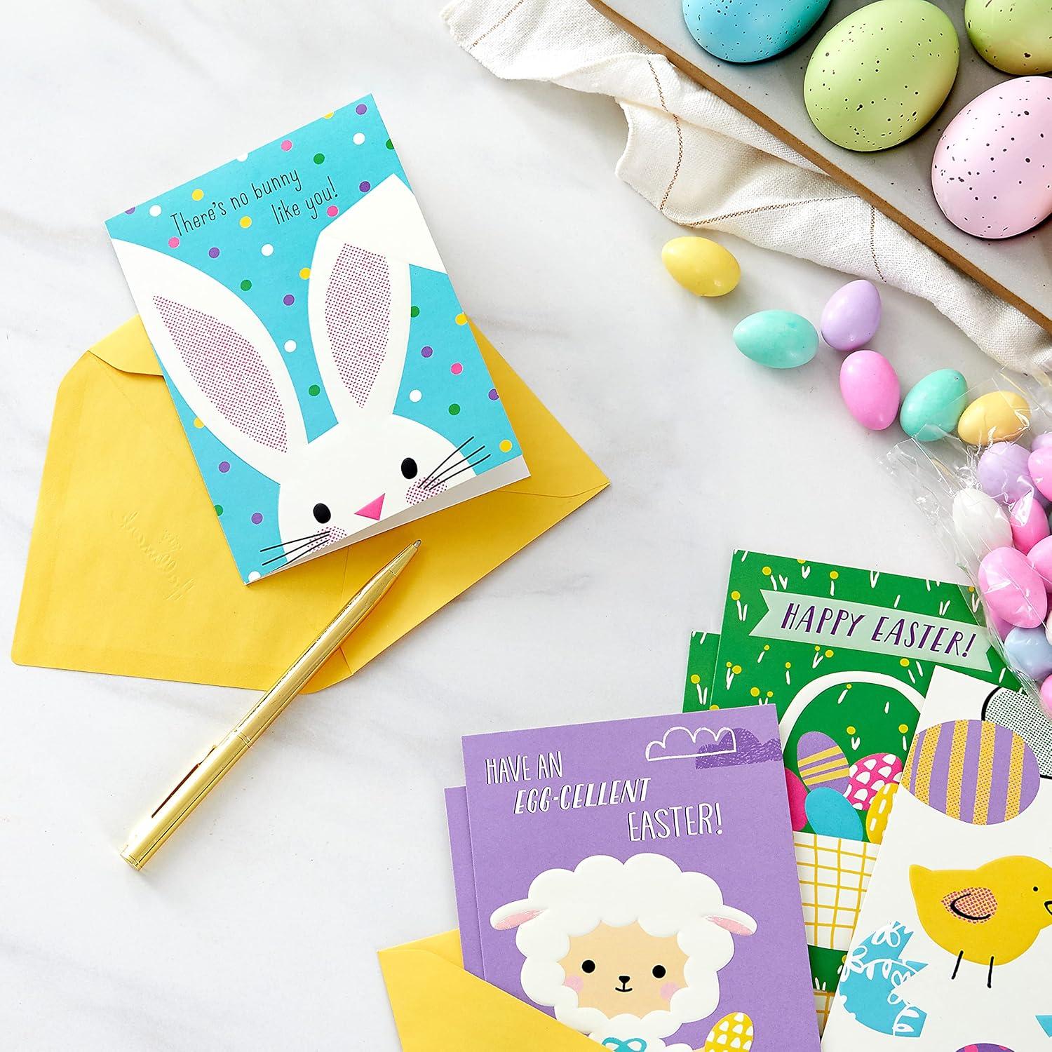 Hallmark Kids Pack of 12 Assorted Easter Cards with Envelopes (Easter Eggs, Bunny, Chick)(Valentine Illustration Card Assortment)
