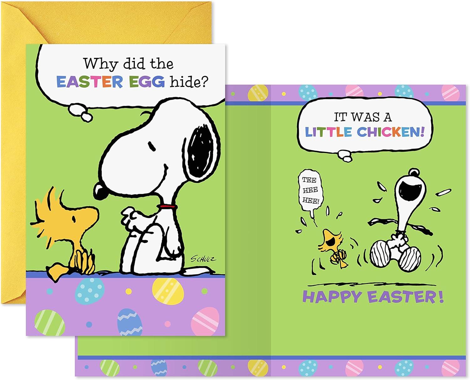 Hallmark Peanuts Pack of Easter Cards, Snoopy Easter Egg Joke (4 Cards with Envelopes)(Easter Snoopy Egg Joke)