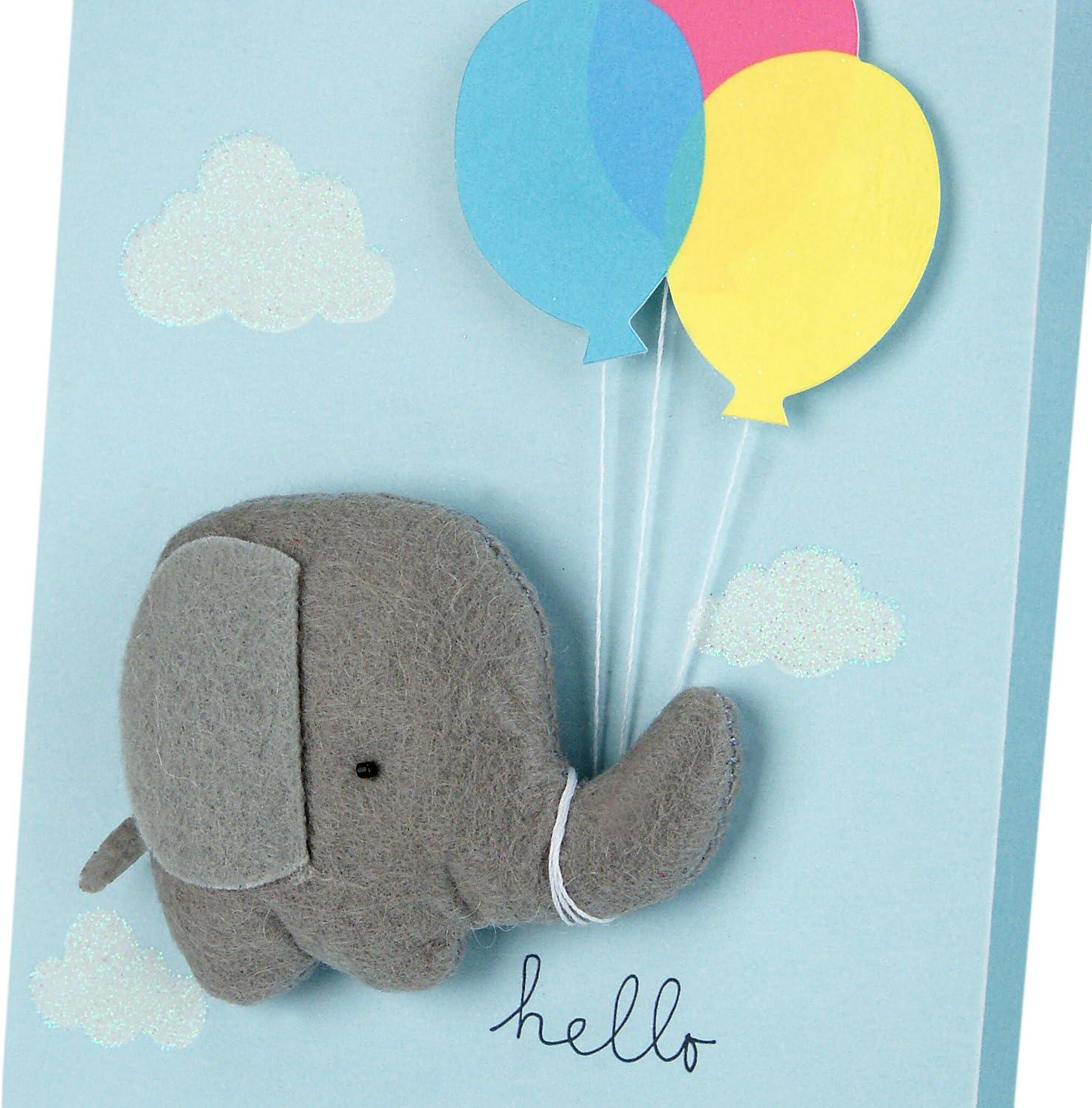 Hallmark Signature Baby Shower Card for Boy (Elephant with Balloon) Welcome New Baby Boy, Congratulations