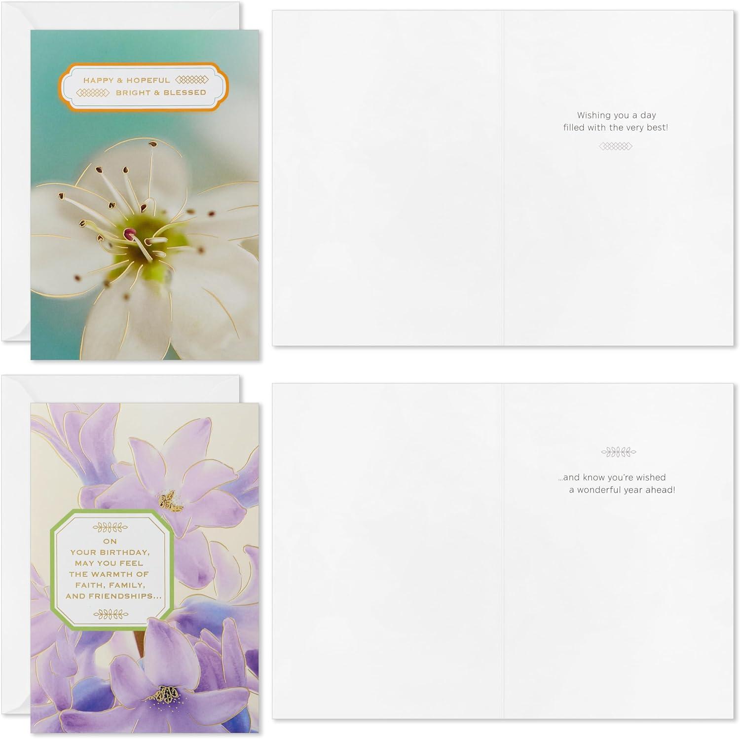 Hallmark Spiritual Birthday Card Assortment (16 Floral Cards with Envelopes, 4 Designs) Bright and Blessed(Party Time)