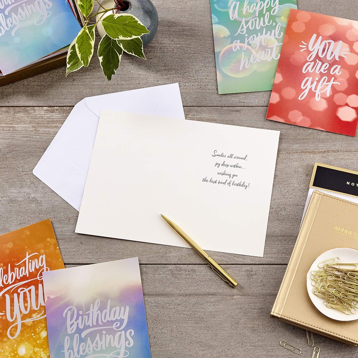 Hallmark Spiritual Birthday Card Assortment (36 Cards with Envelopes, 6 Designs) Blessed Birthday(Make a Wish)