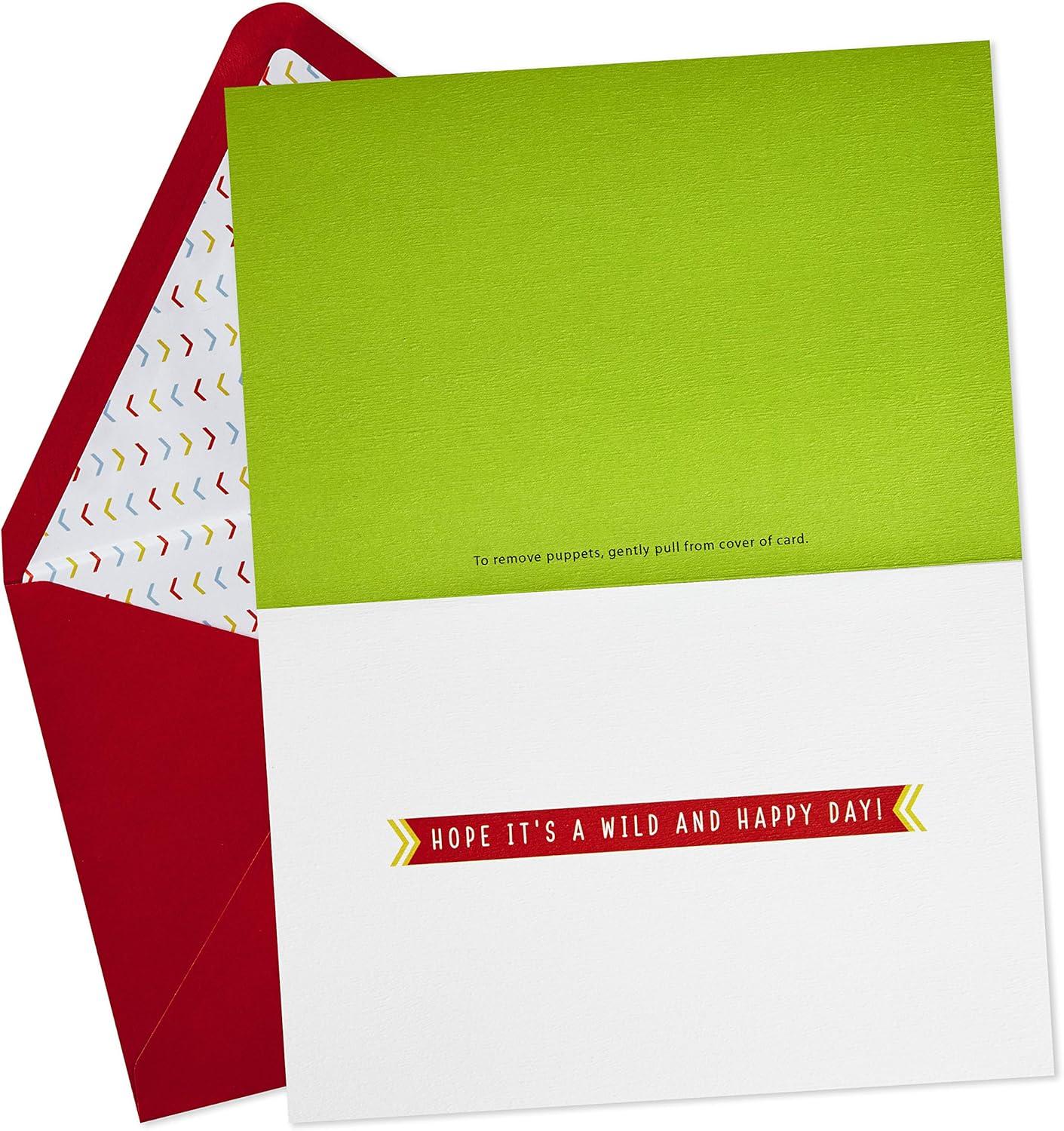 Hallmark Signature Easter Card with Bunny Ears Headband (Somebunny Loves You) for Kids, Grandchildren, Niece(Jungle Animal Finger Puppets)