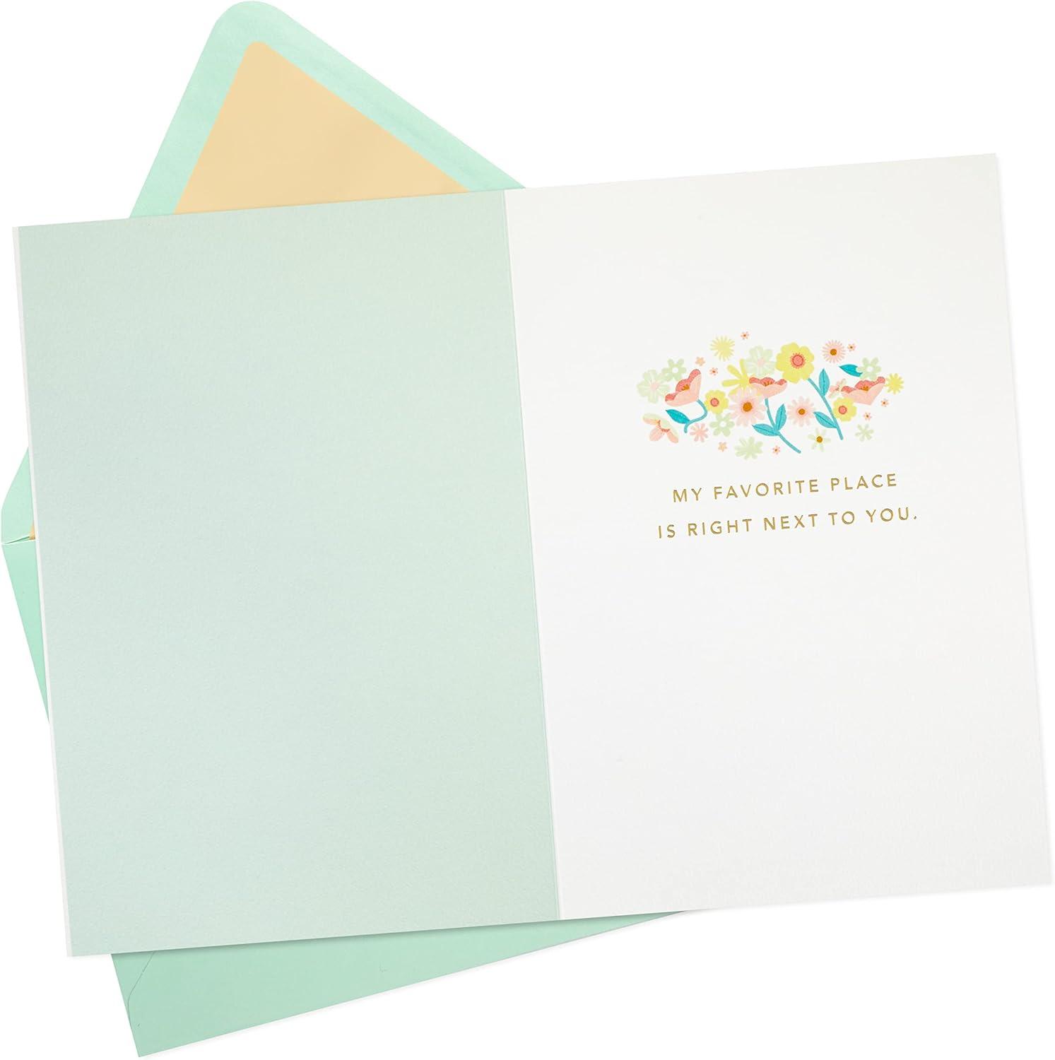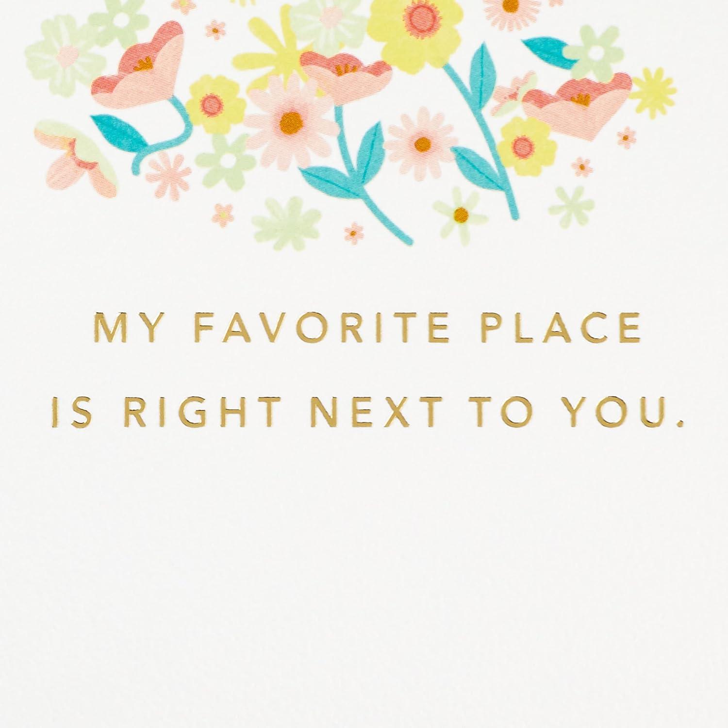Hallmark Signature Anniversary Card (Gold and Woodgrain, Love You More) for Husband, Wife, Partner, Spouse(Favorite Place)