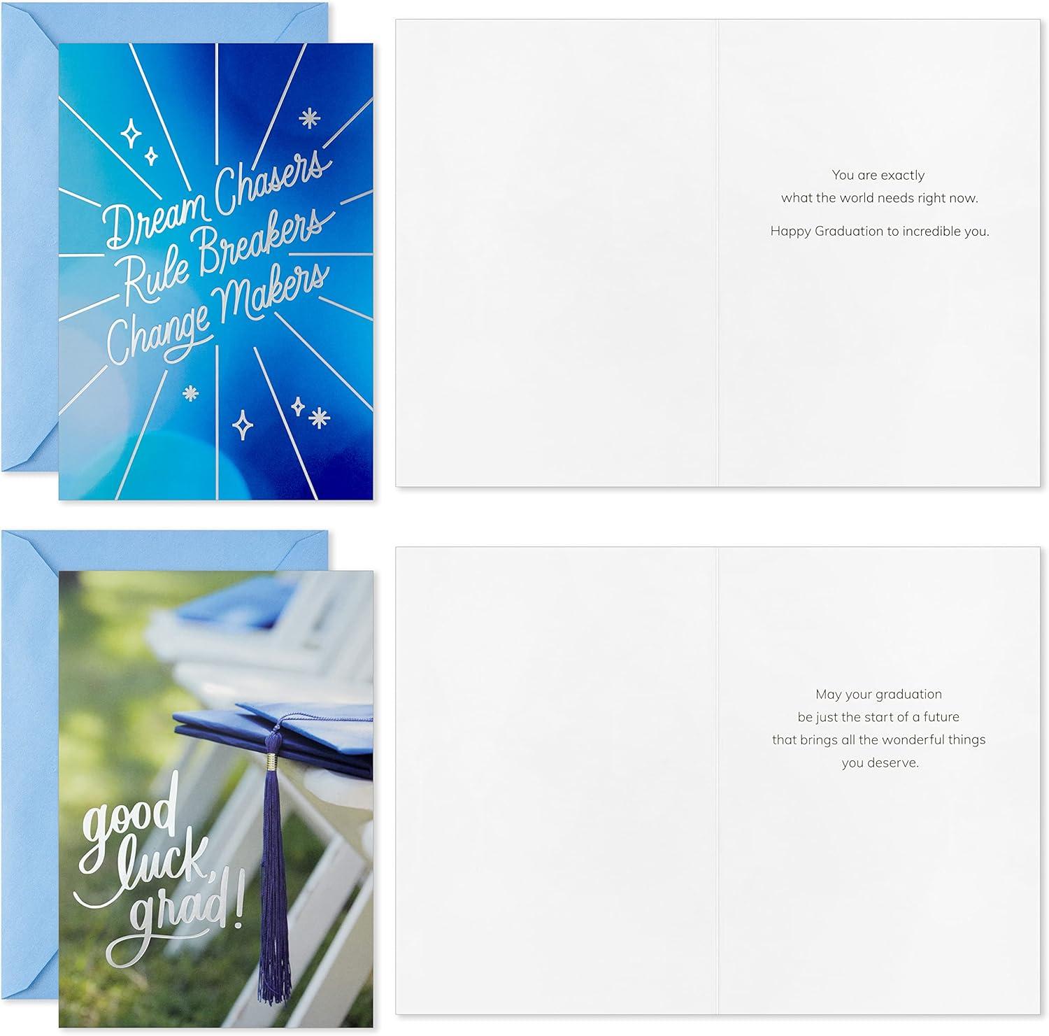 Hallmark Graduation Card Assortment (16 Cards with Envelopes) Inspirational Quotes(Black and Blue)