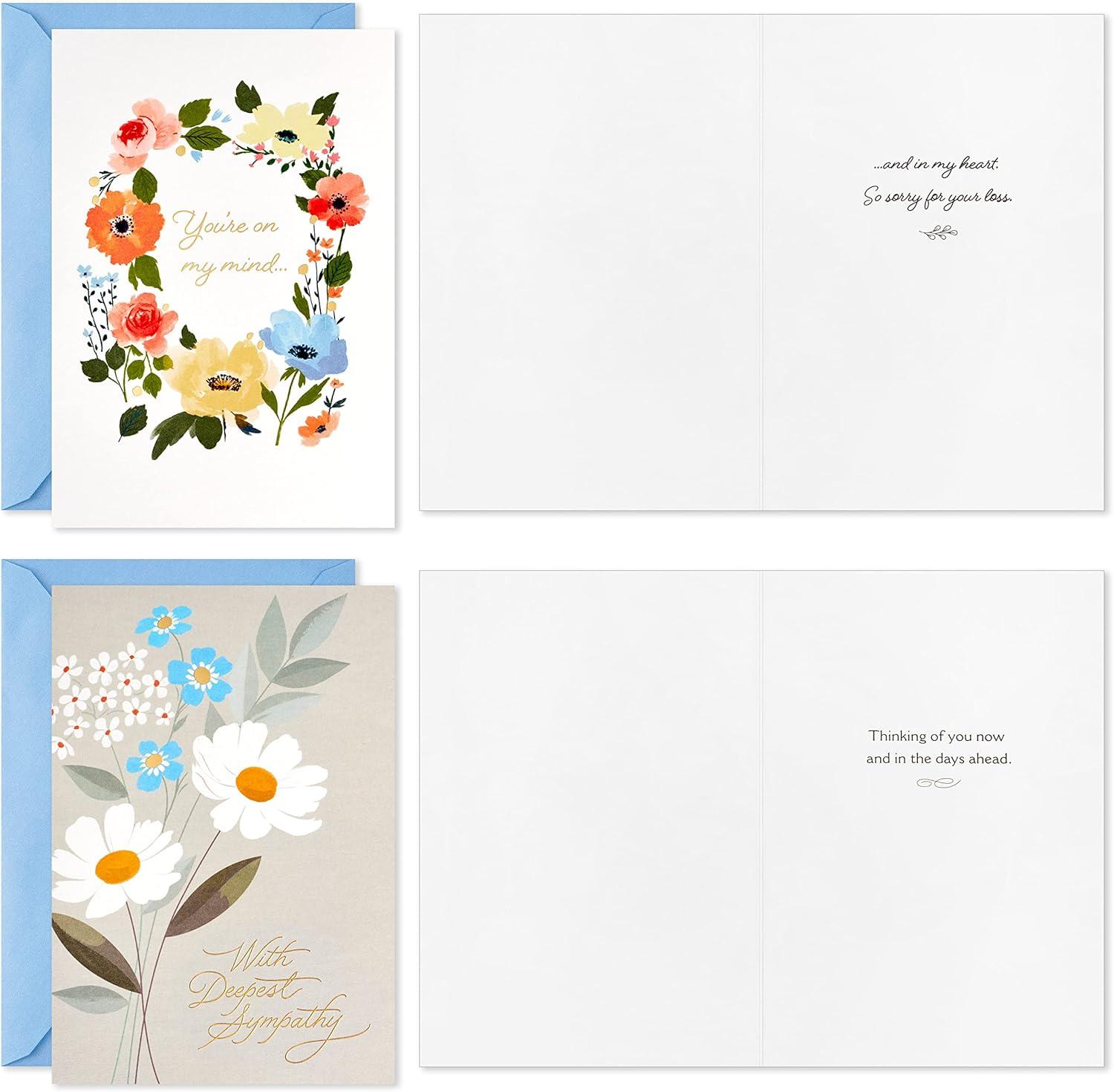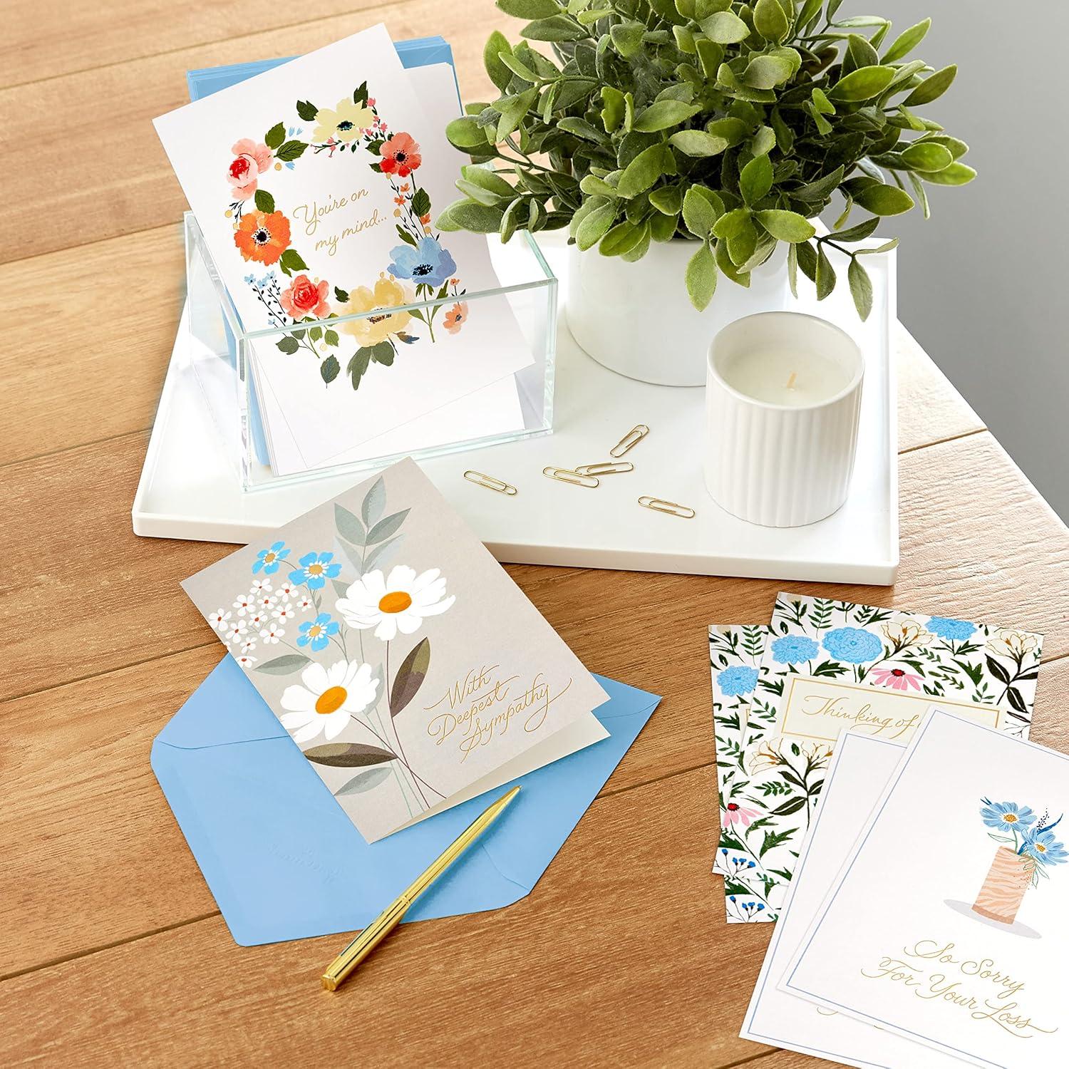 Hallmark Sympathy Cards Assortment, Painted Flowers (16 Assorted Thinking of You Cards with Envelopes)