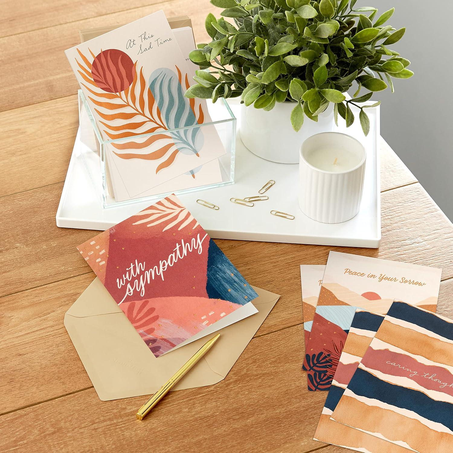 Hallmark Sympathy Cards Assortment, Abstract Watercolor (16 Assorted Thinking of You Cards with Envelopes)