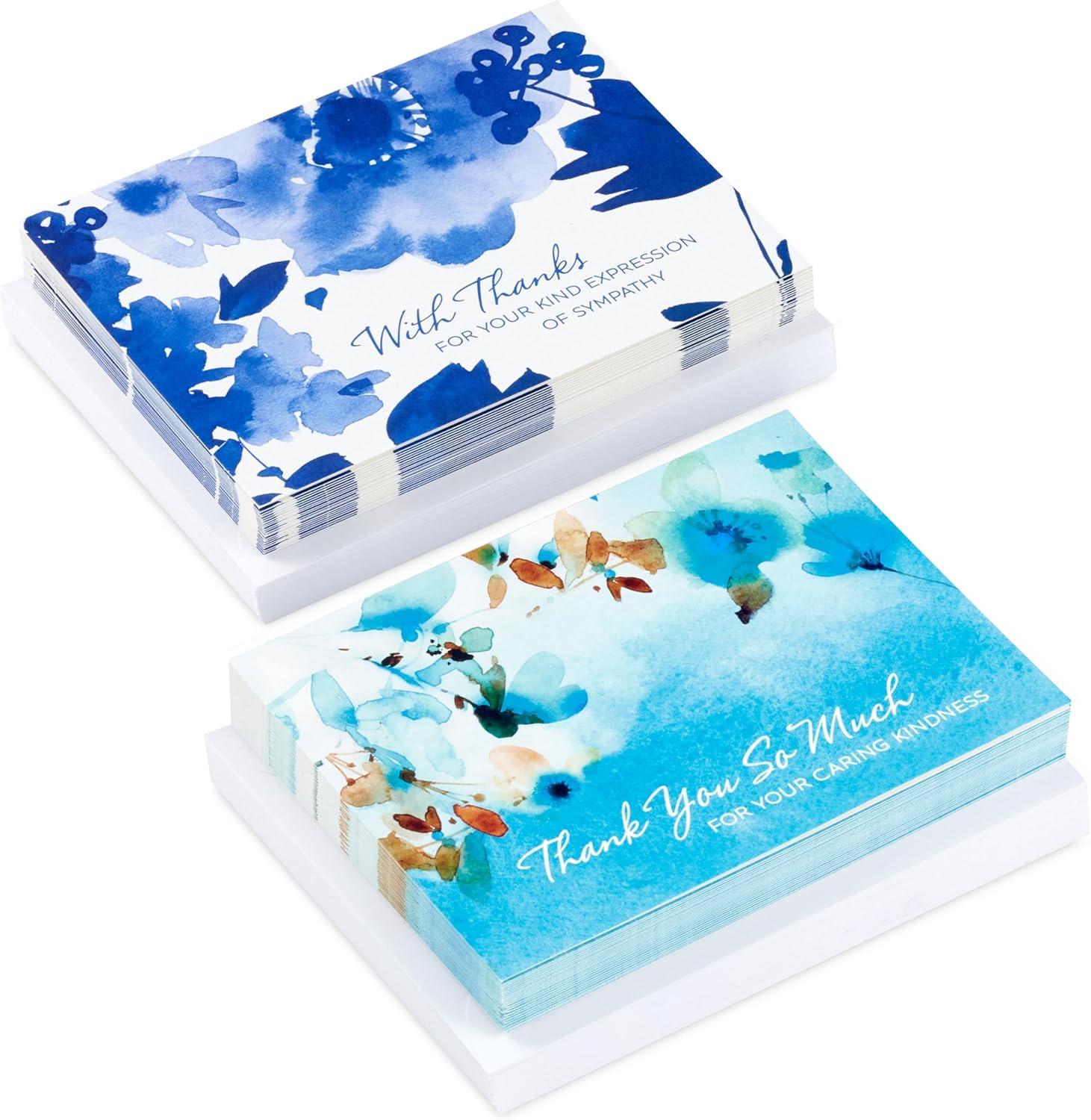 Hallmark Sympathy Thank You Notes (50 Blank Cards with Envelopes) Blue Watercolor Flowers