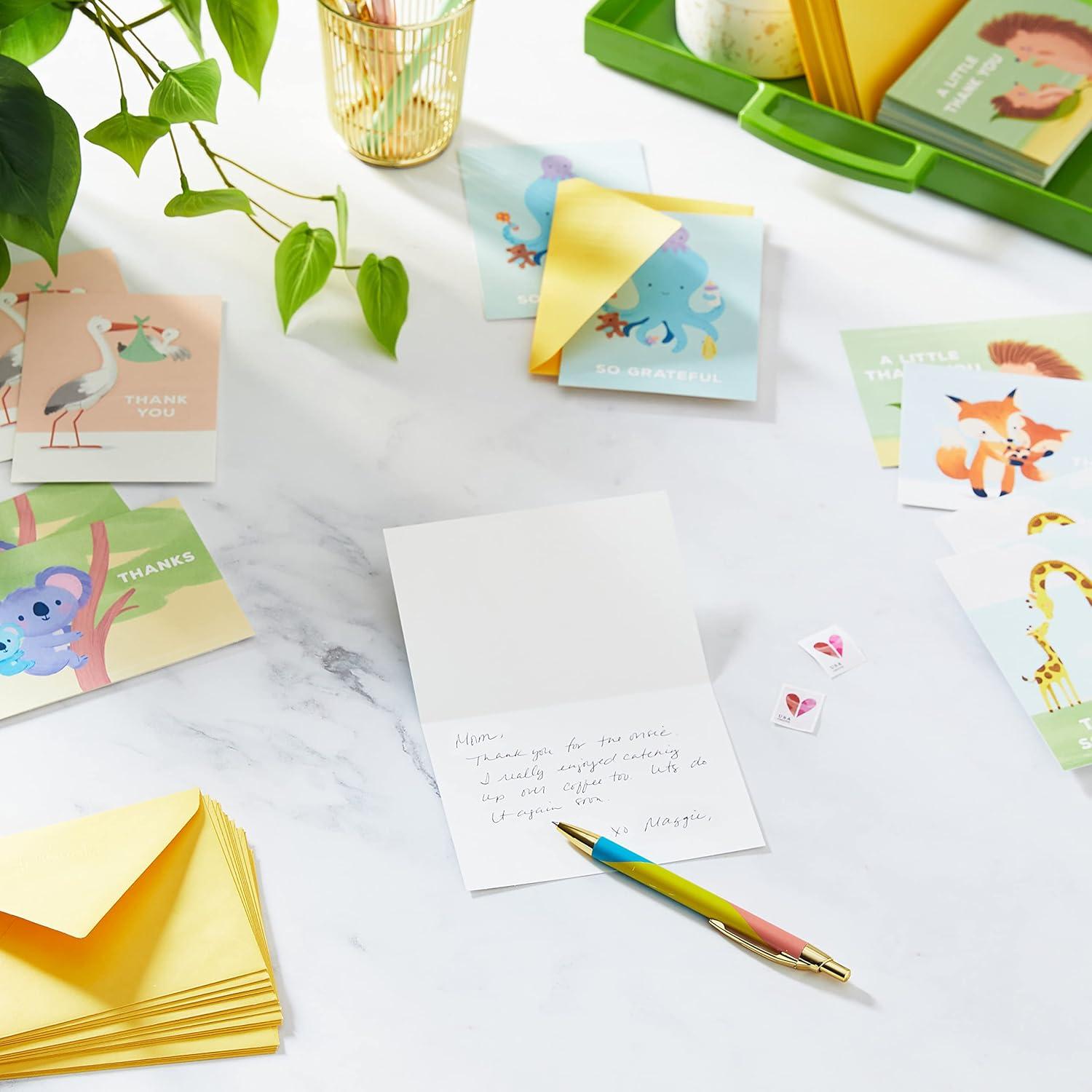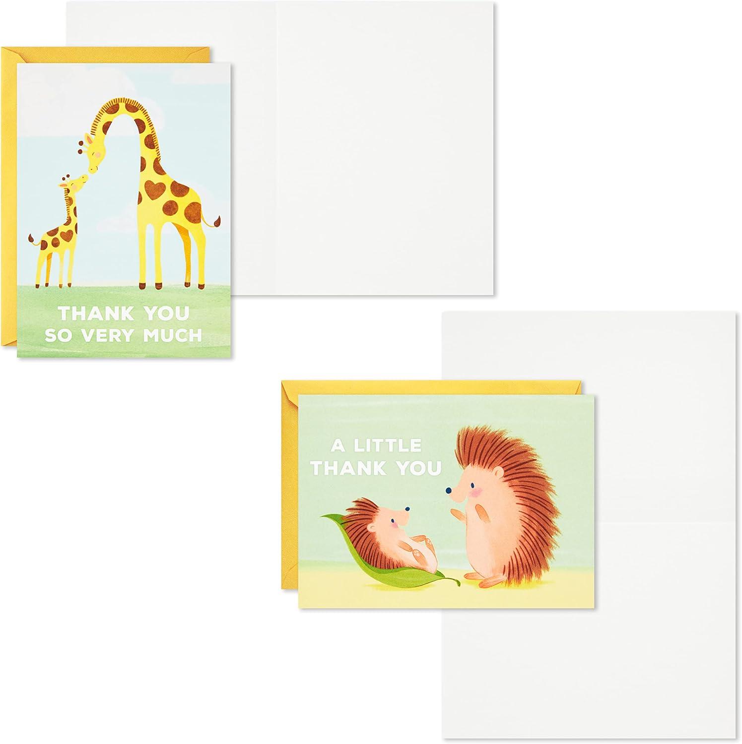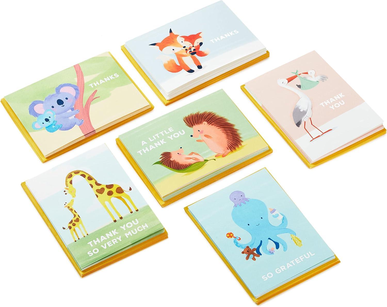 Hallmark Baby Shower Thank You Cards Assortment, Baby Animals (48 Cards and Envelopes—Stork, Giraffes, Koalas, Octopus, Fox, Hedgehogs)