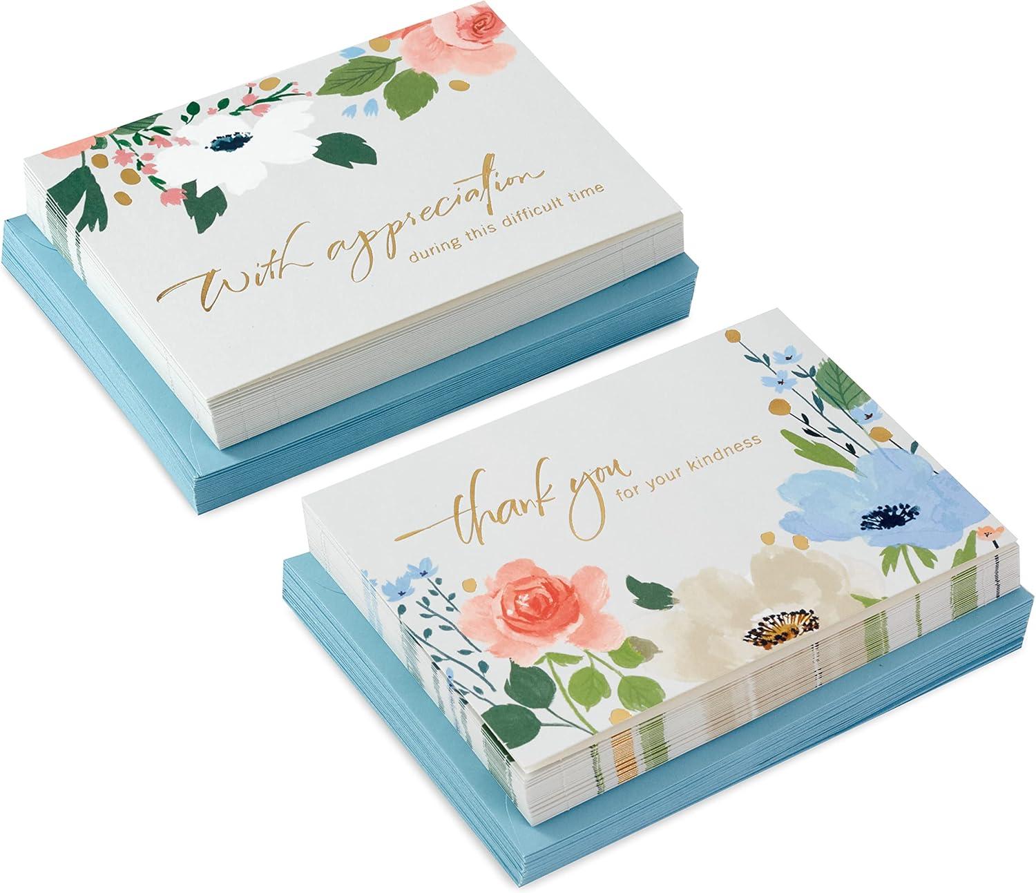 Hallmark Funeral Thank You Cards Assortment, Watercolor Flowers (50 Thank You for Your Sympathy Cards with Envelopes)(Thank You Card)