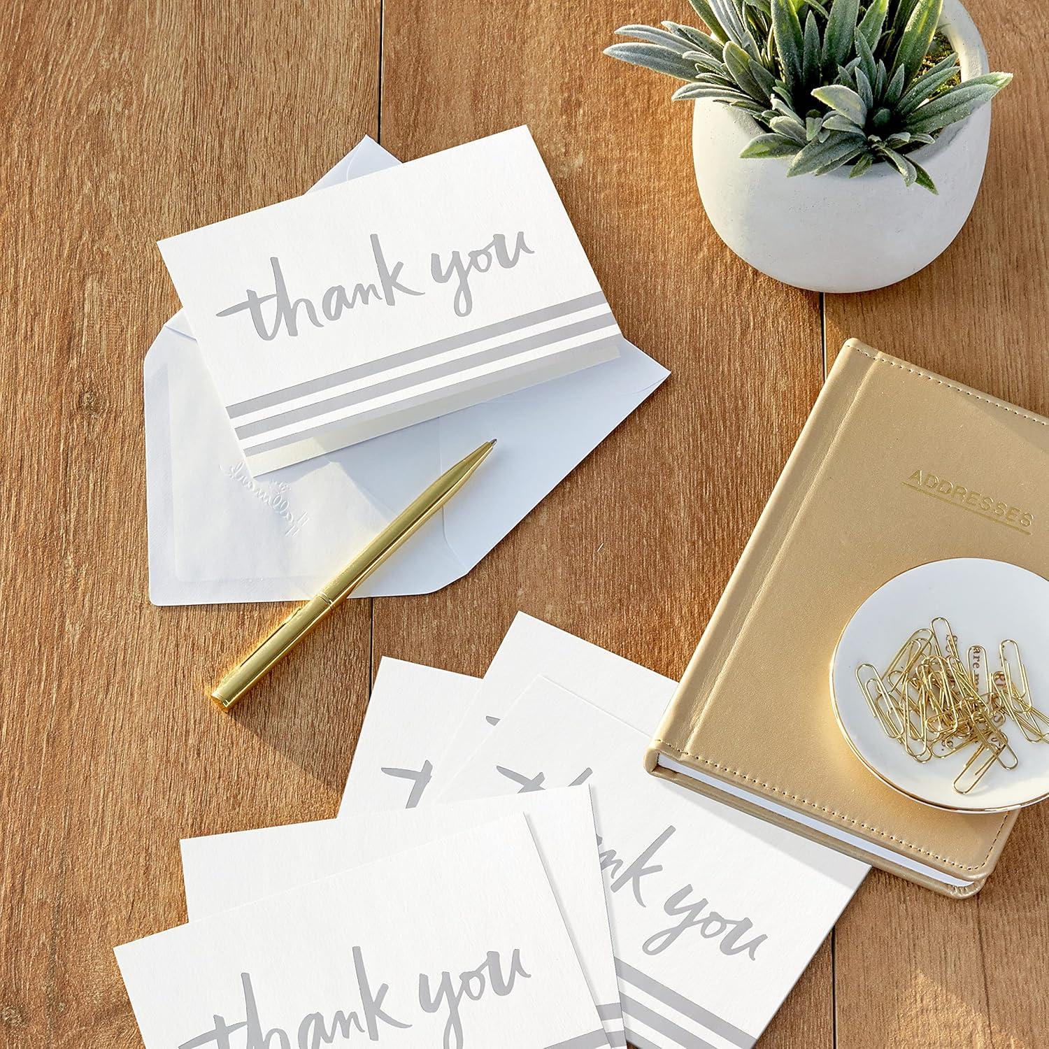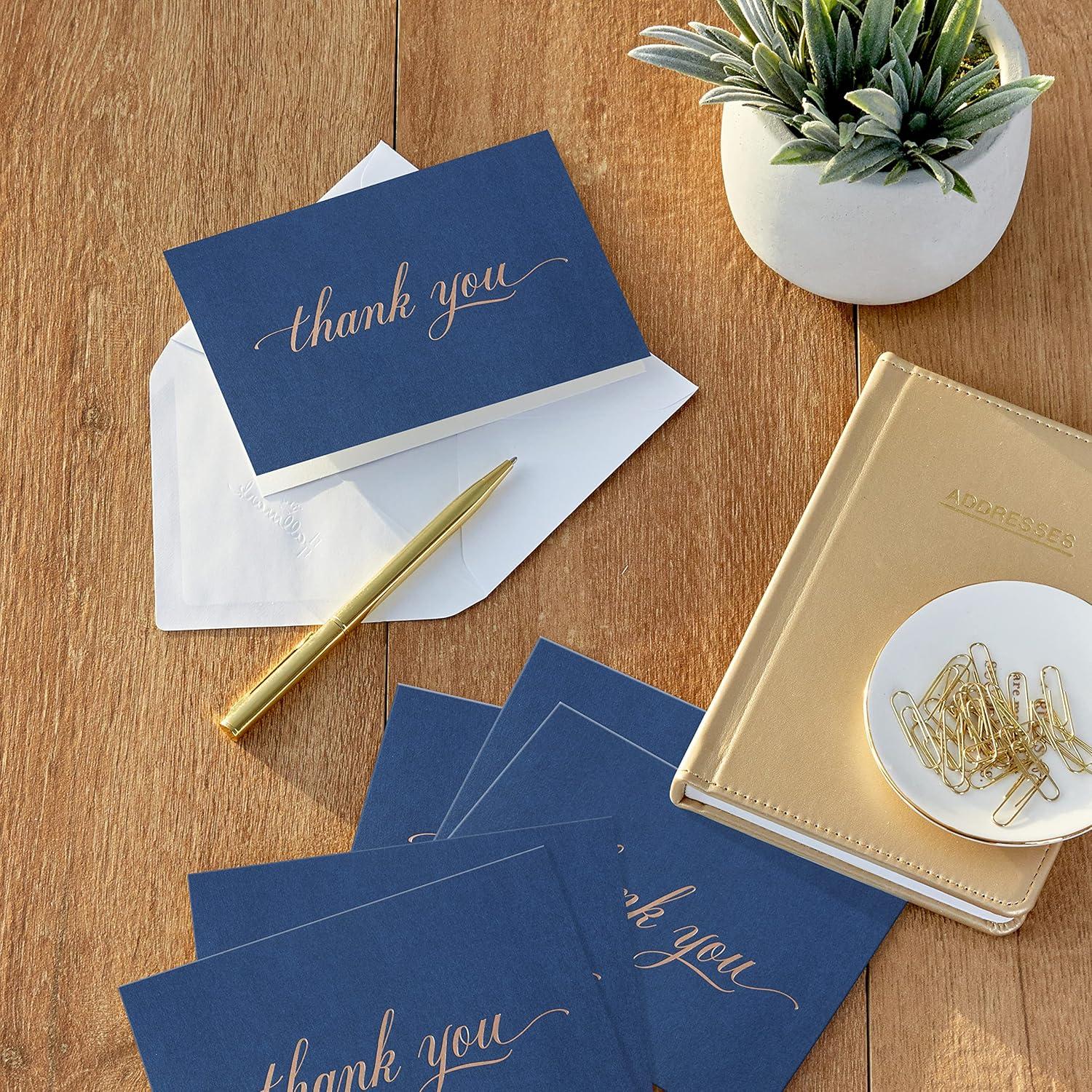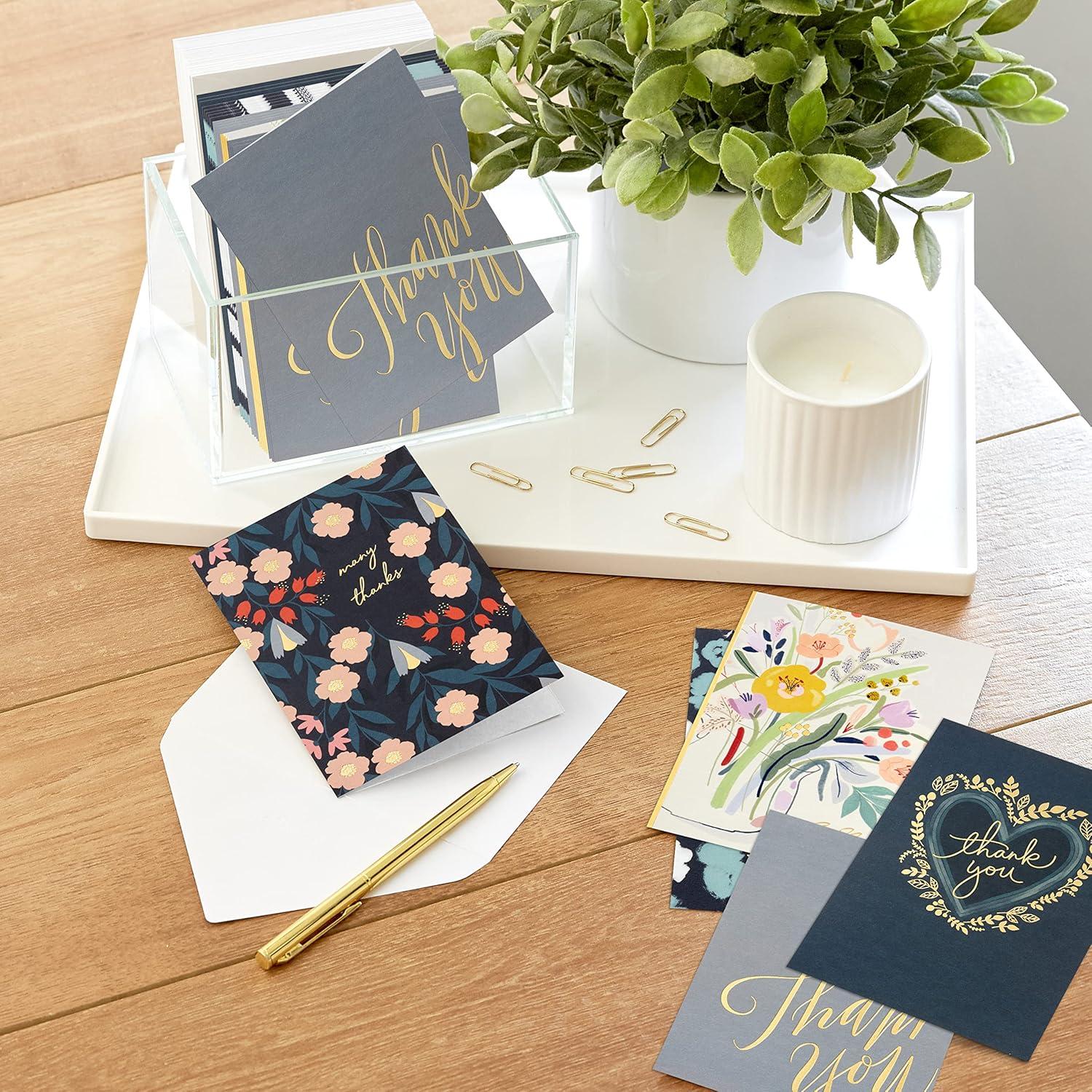 Hallmark Pack of Thank You Cards, Elegant Silver Foil (40 Thank You Notes with Envelopes)(Gold and Navy)
