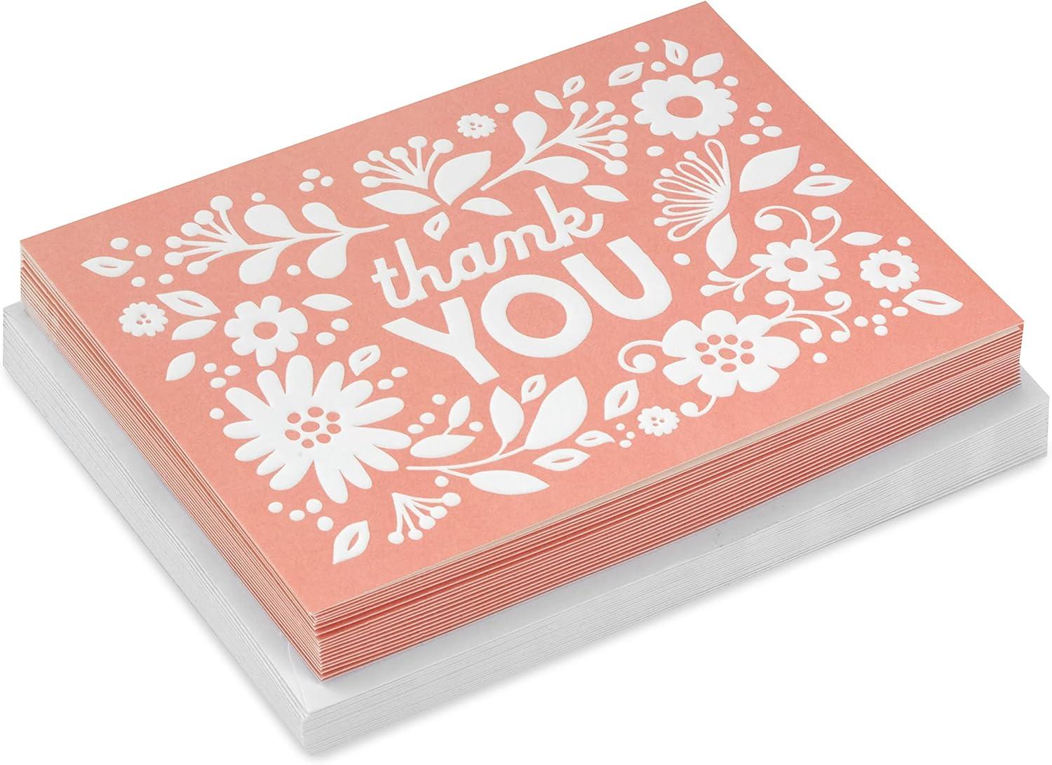 Hallmark Pack of Thank You Cards, Pink Rustic Flowers (20 Thank You Notes with Envelopes for Baby Showers, Weddings, All Occasion)(20 Count (Pack of 1))