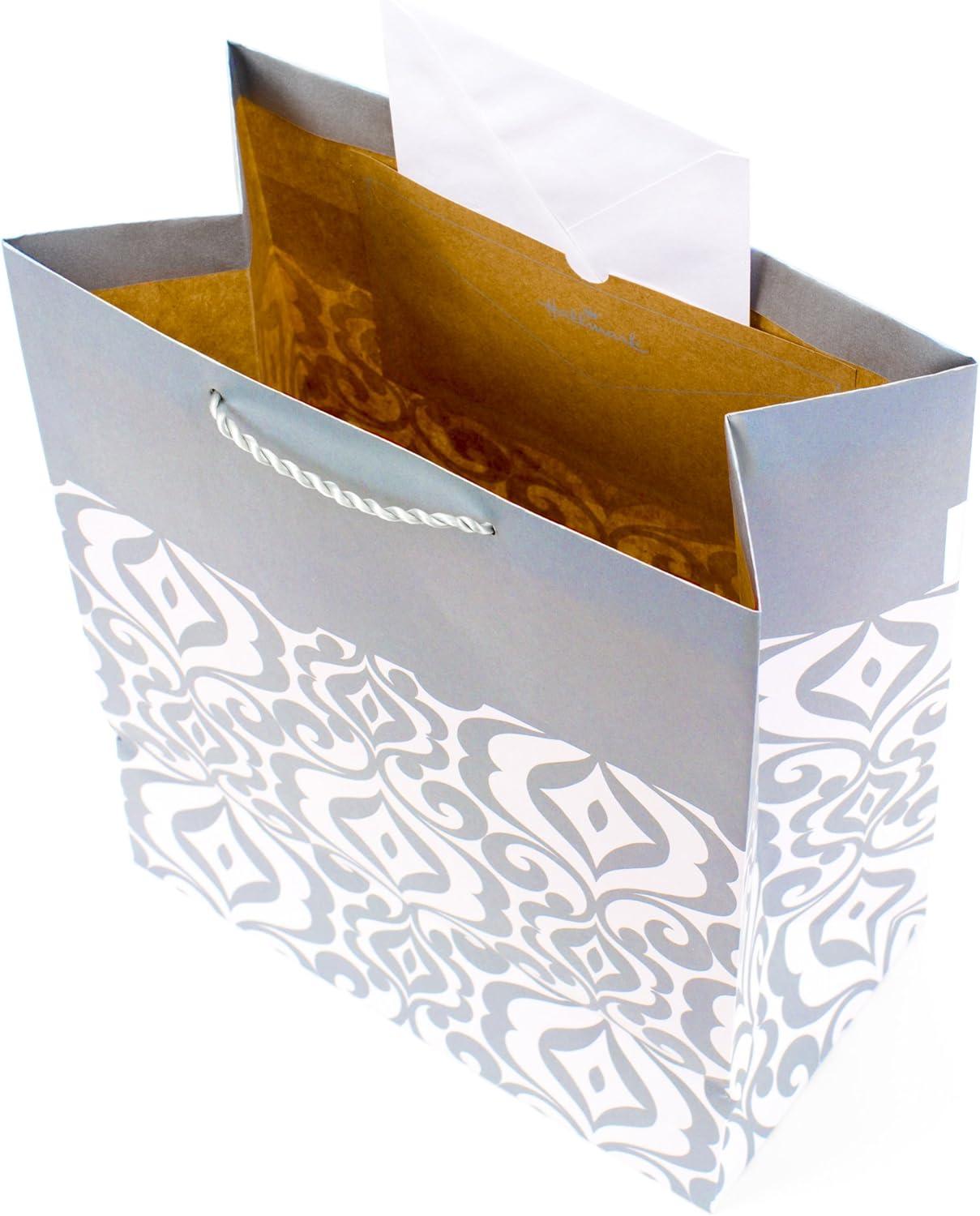 Hallmark 9″ Medium Silver Gift Bag (Scroll) with Tissue Paper for Valentines Day, Holidays, Weddings, Anniversary, Engagements and More(Large Silver Damask)