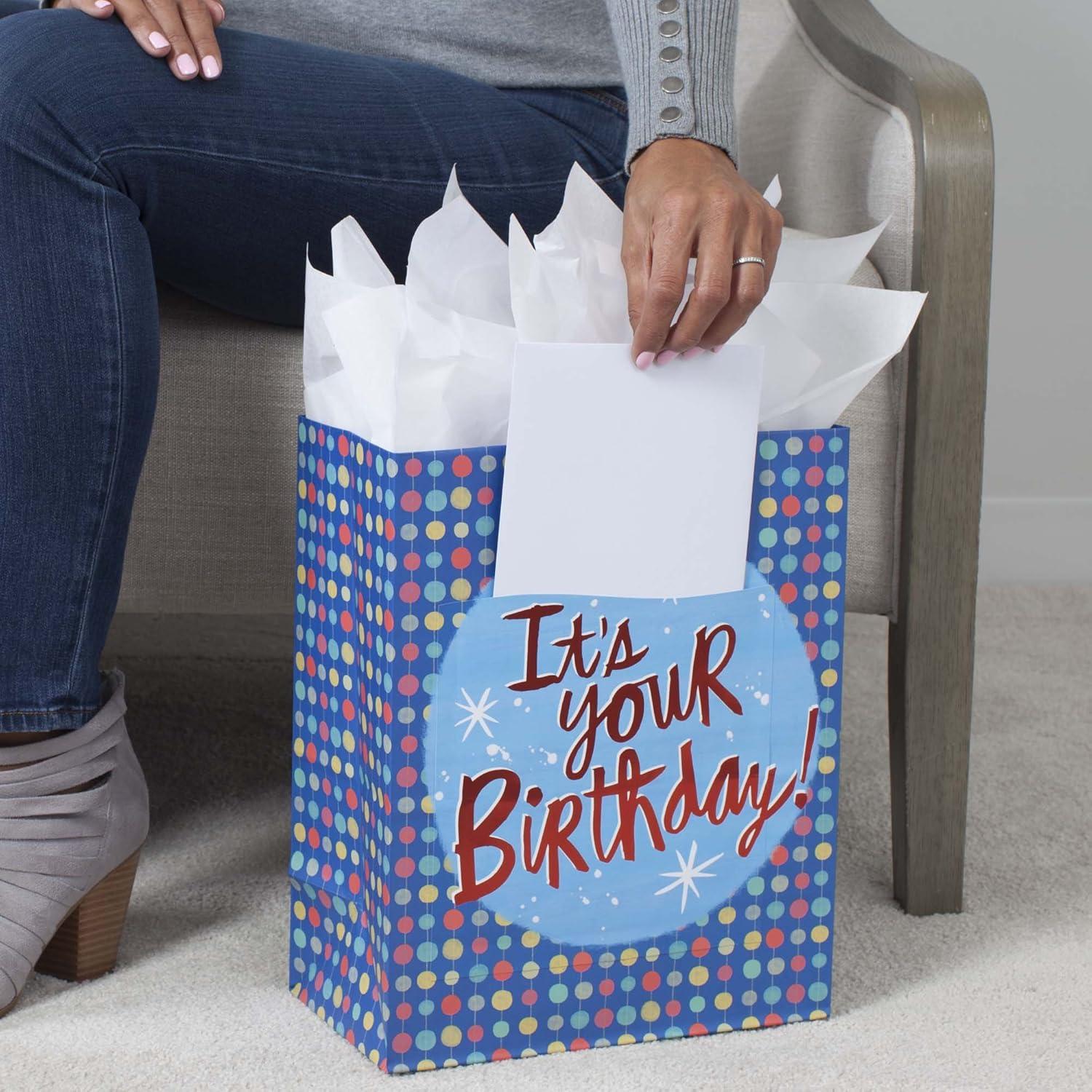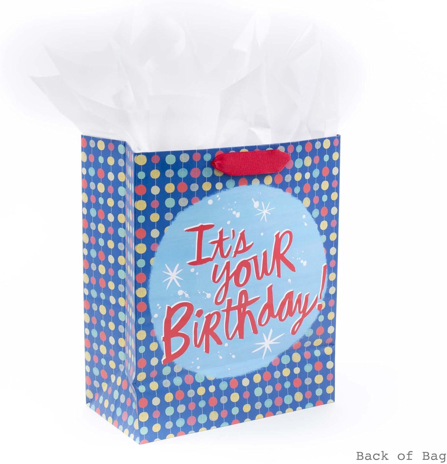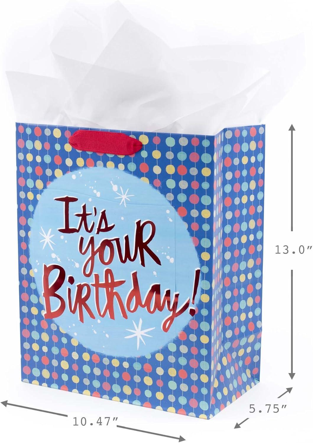 Hallmark 13″ Large Birthday Gift Bag with Tissue Paper and Birthday Card (Rainbow Stripes) for Kids, Adults, Coworkers(Birthday Boy)