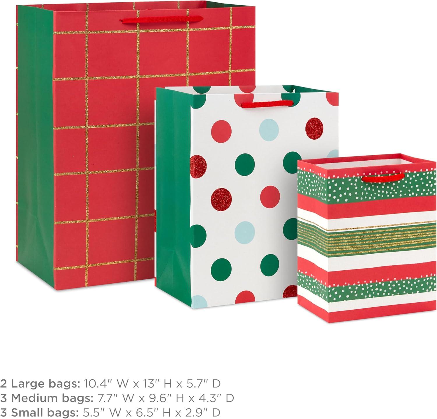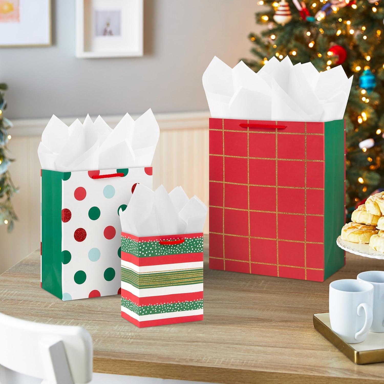 Hallmark 11″ Large Red Gift Bag Bundle (Pack of 3) for Birthdays, Graduations, Mother’s Day, Father’s Day, Baby Showers(Plaid Polka Dots Stripes)