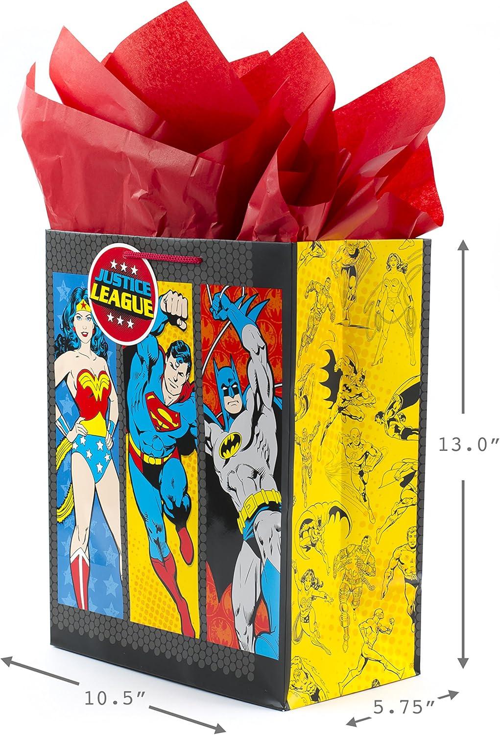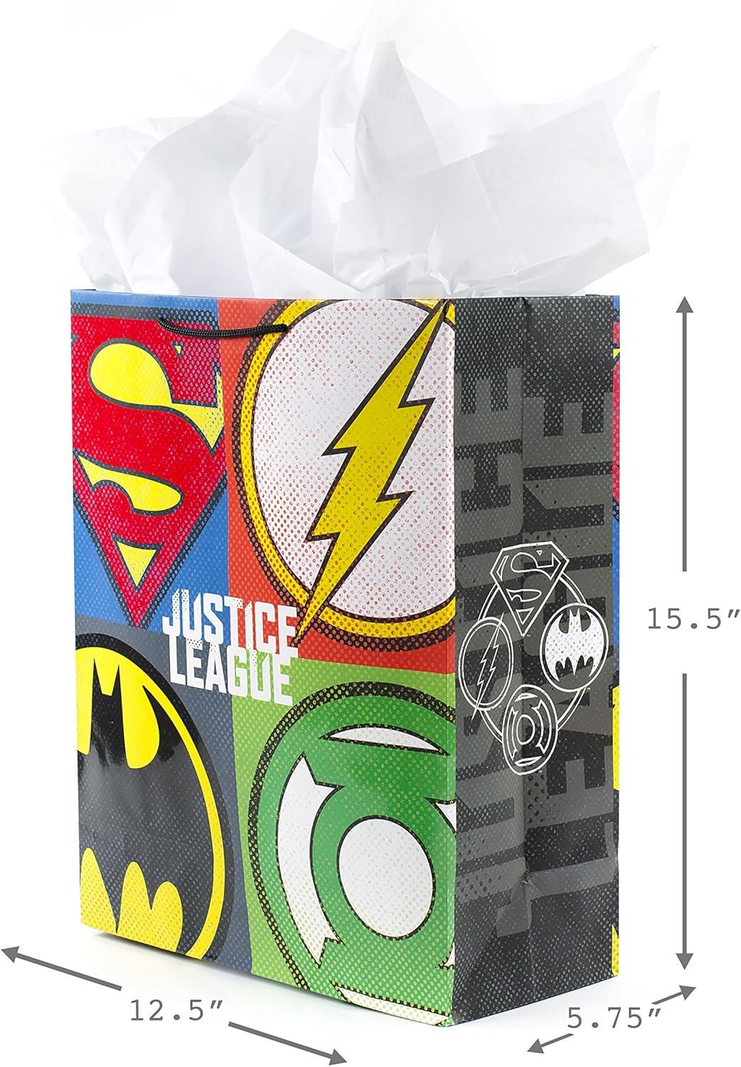 Hallmark Justice League Wrapping Paper Bundle with Cut Lines on Reverse (3 Rolls – 60 sq. ft. ttl) Wonder Woman, Batman, Superman, Flash, Green Lantern(Large Justice League Gift Bag)