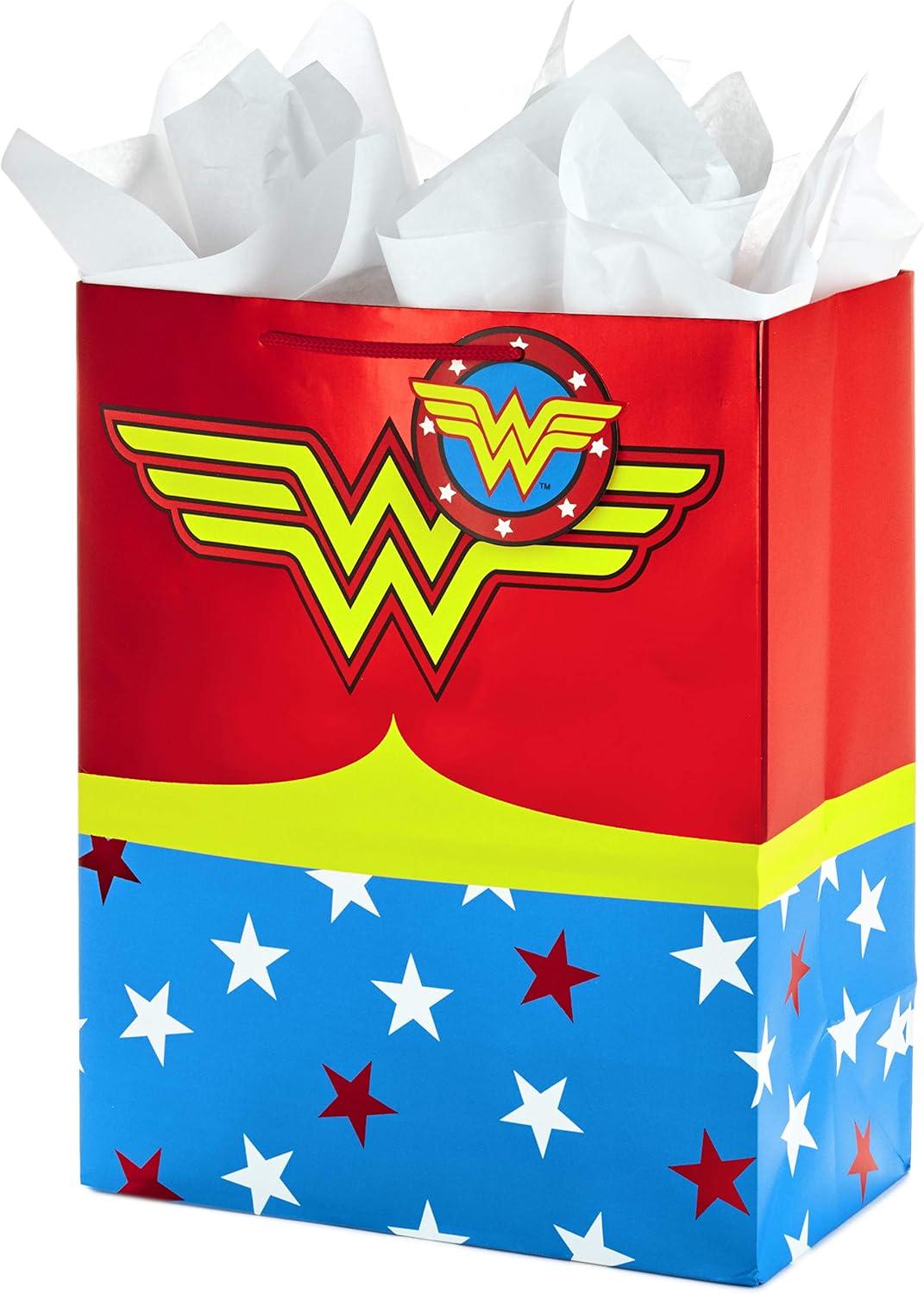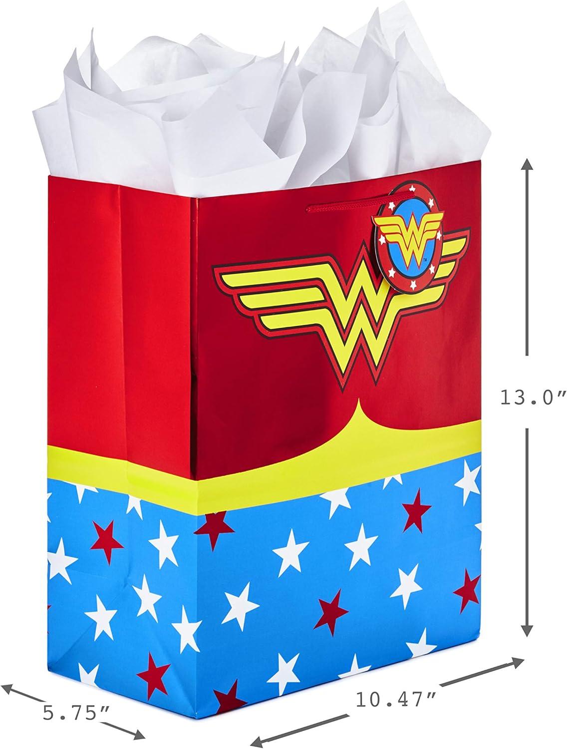 Hallmark Justice League Wrapping Paper Bundle with Cut Lines on Reverse (3 Rolls – 60 sq. ft. ttl) Wonder Woman, Batman, Superman, Flash, Green Lantern(Large Wonder Woman Gift Bag)