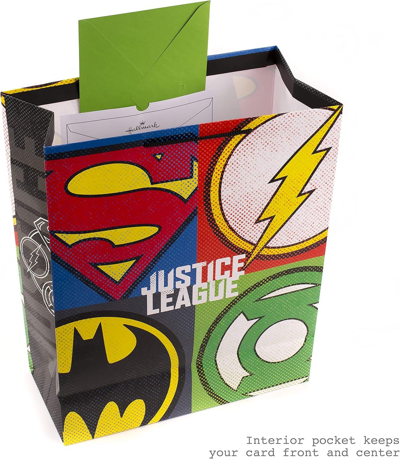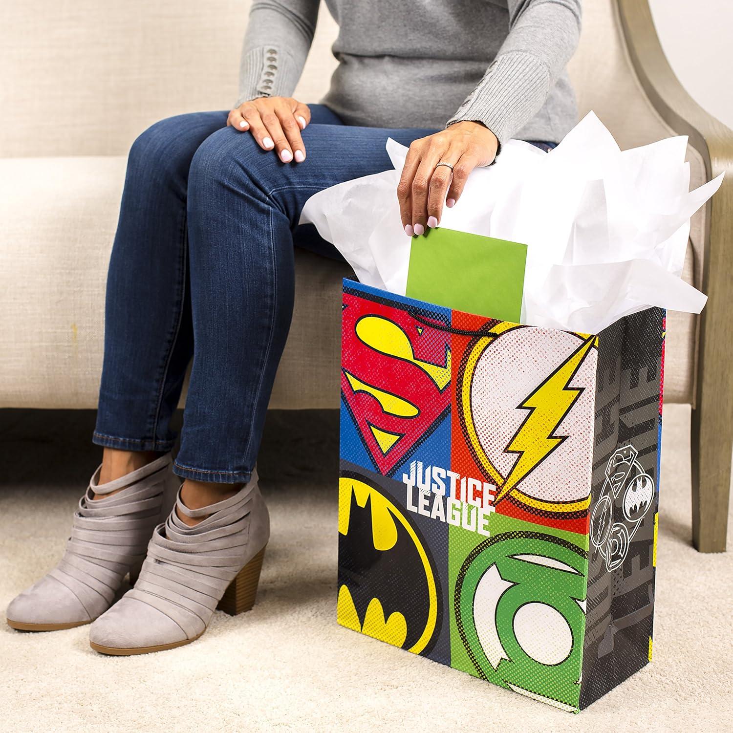 Hallmark Justice League Wrapping Paper Bundle with Cut Lines on Reverse (3 Rolls – 60 sq. ft. ttl) Wonder Woman, Batman, Superman, Flash, Green Lantern(Xl Justice League Gift Bag)