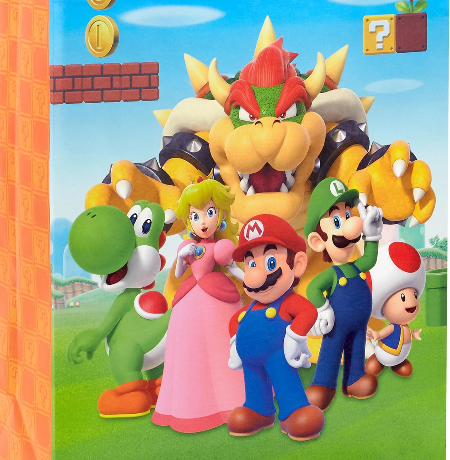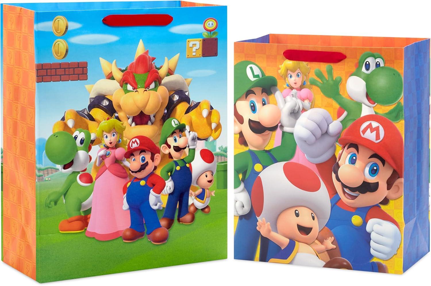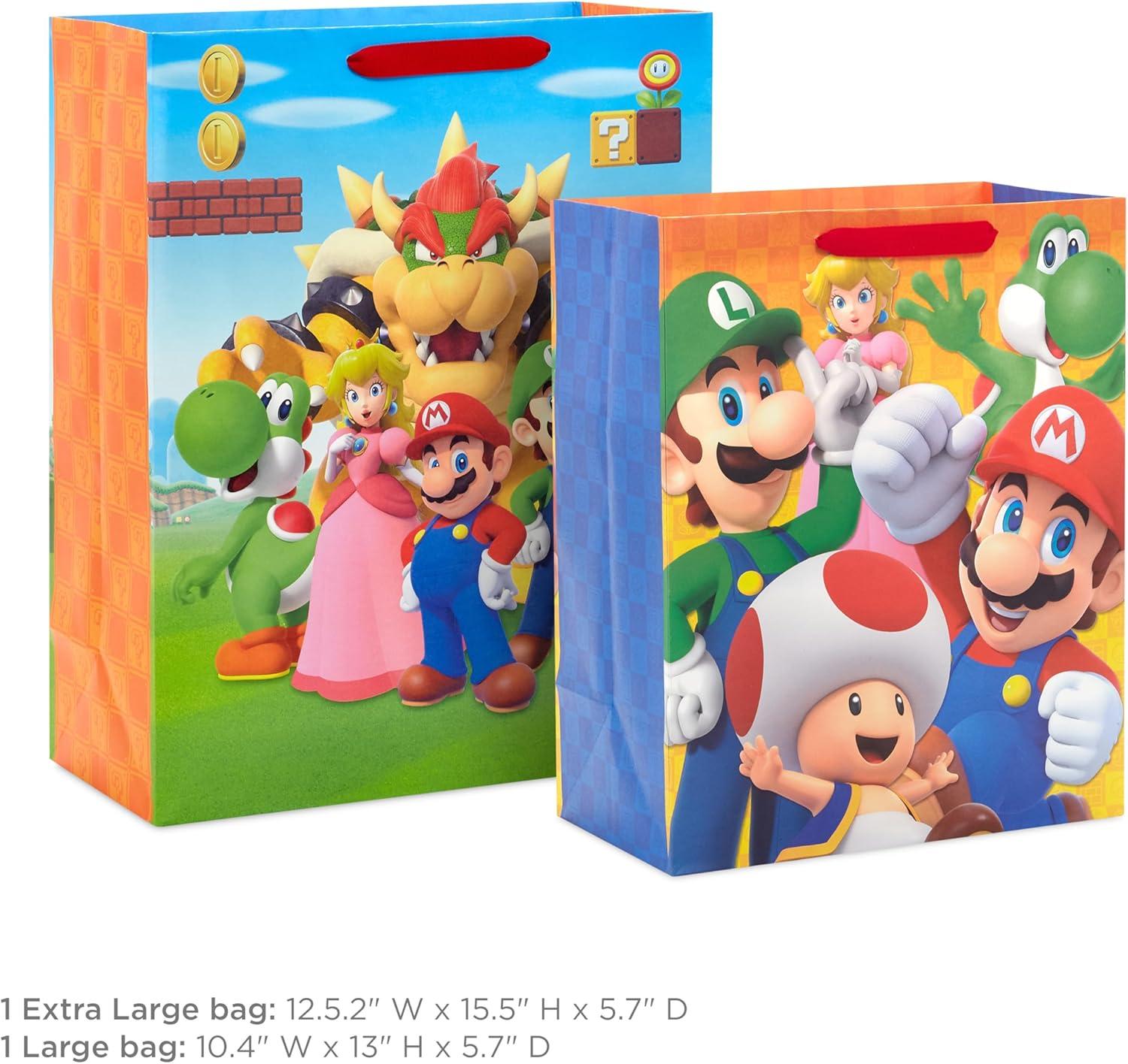 Hallmark Nintendo Super Mario Brothers Gift Bags (1 Large, 1 Extra Large) Luigi, Princess, Yoshi, Toad(Gift Bags)