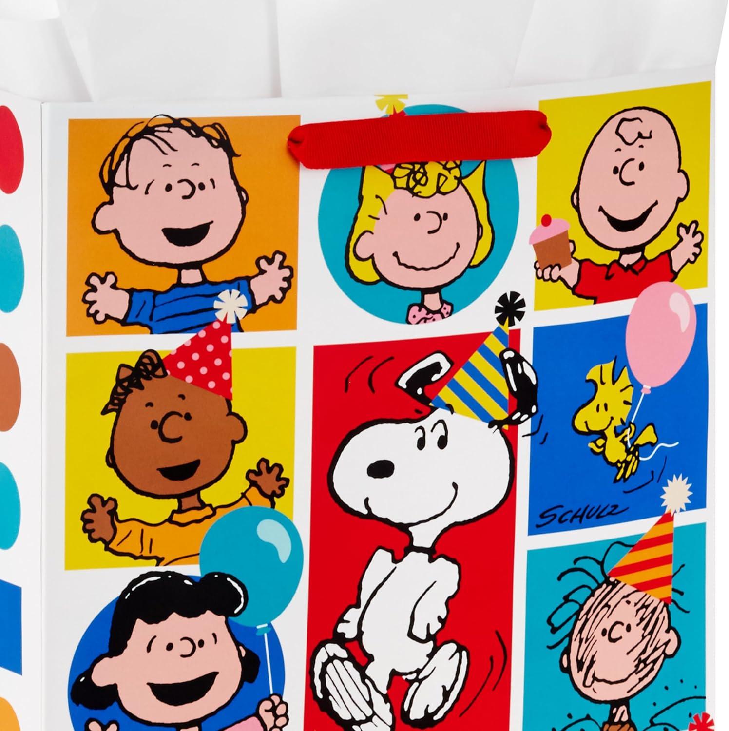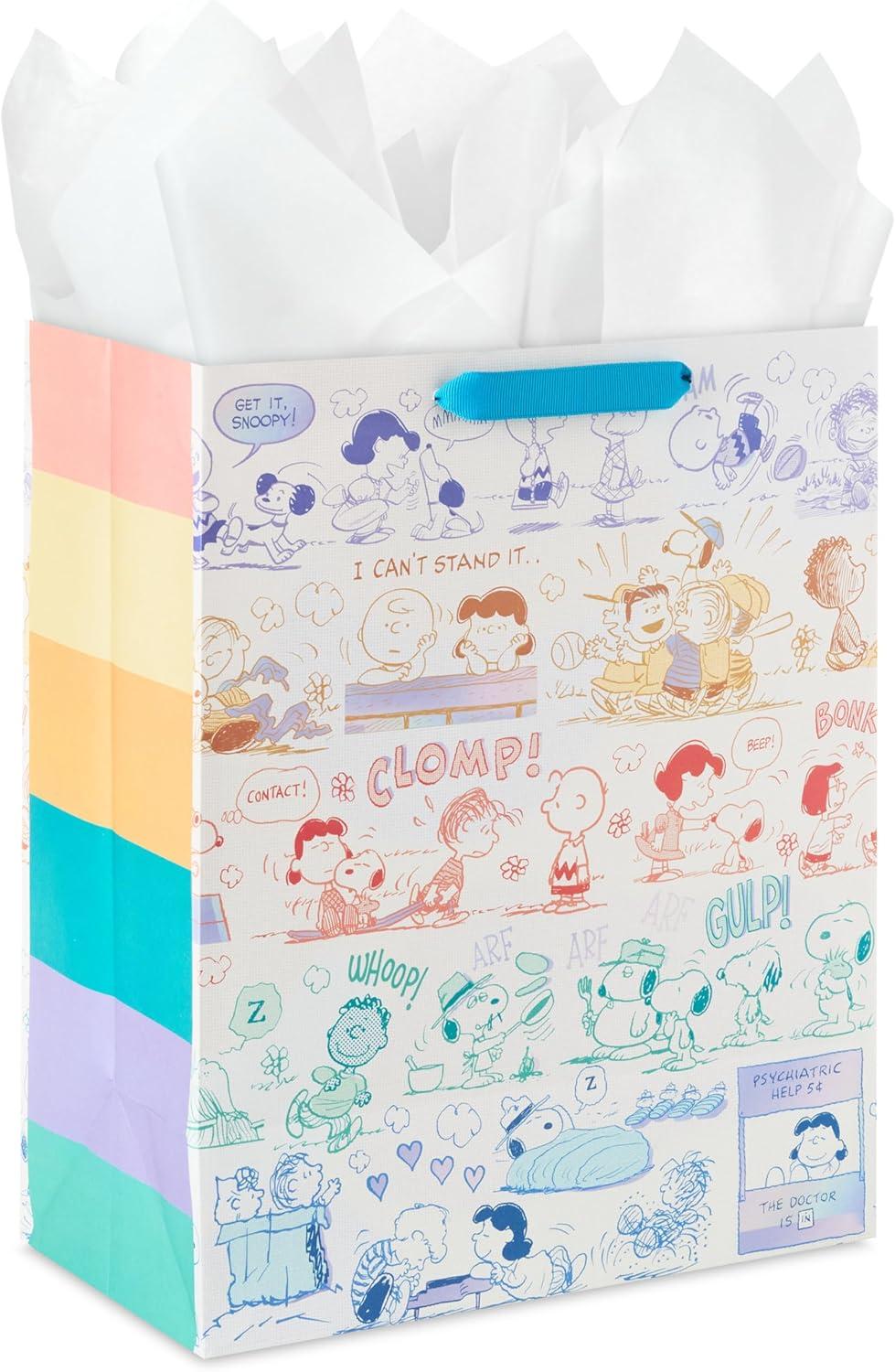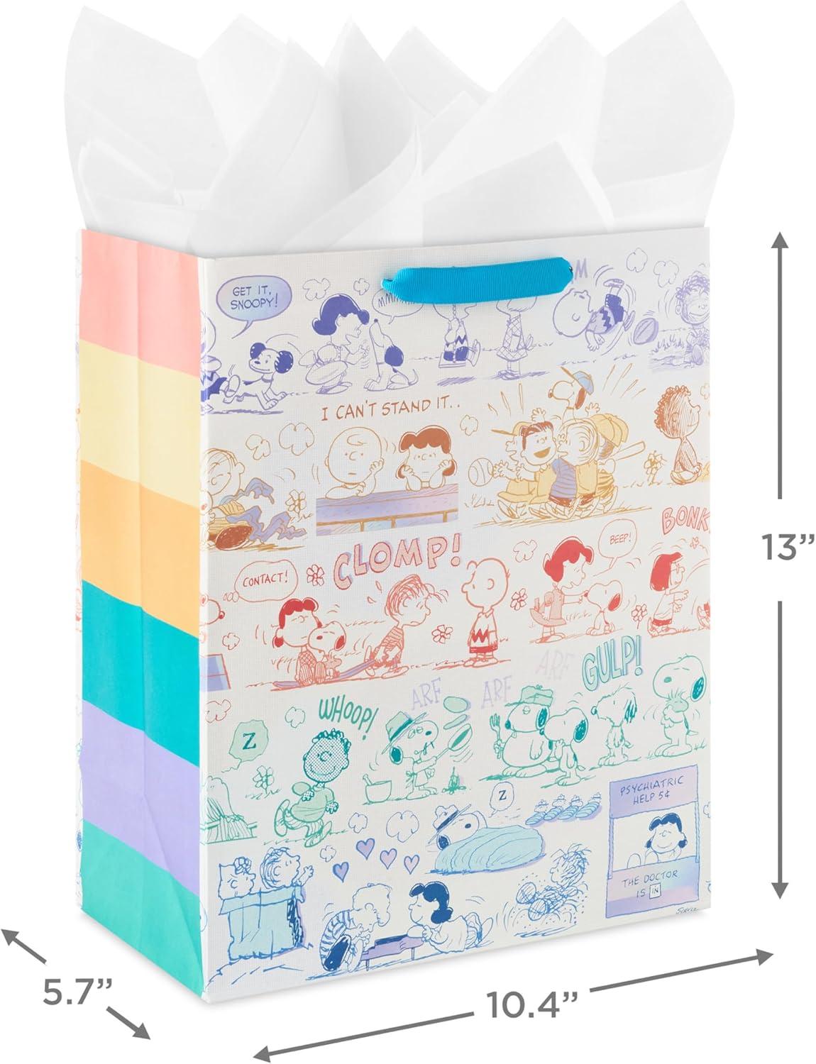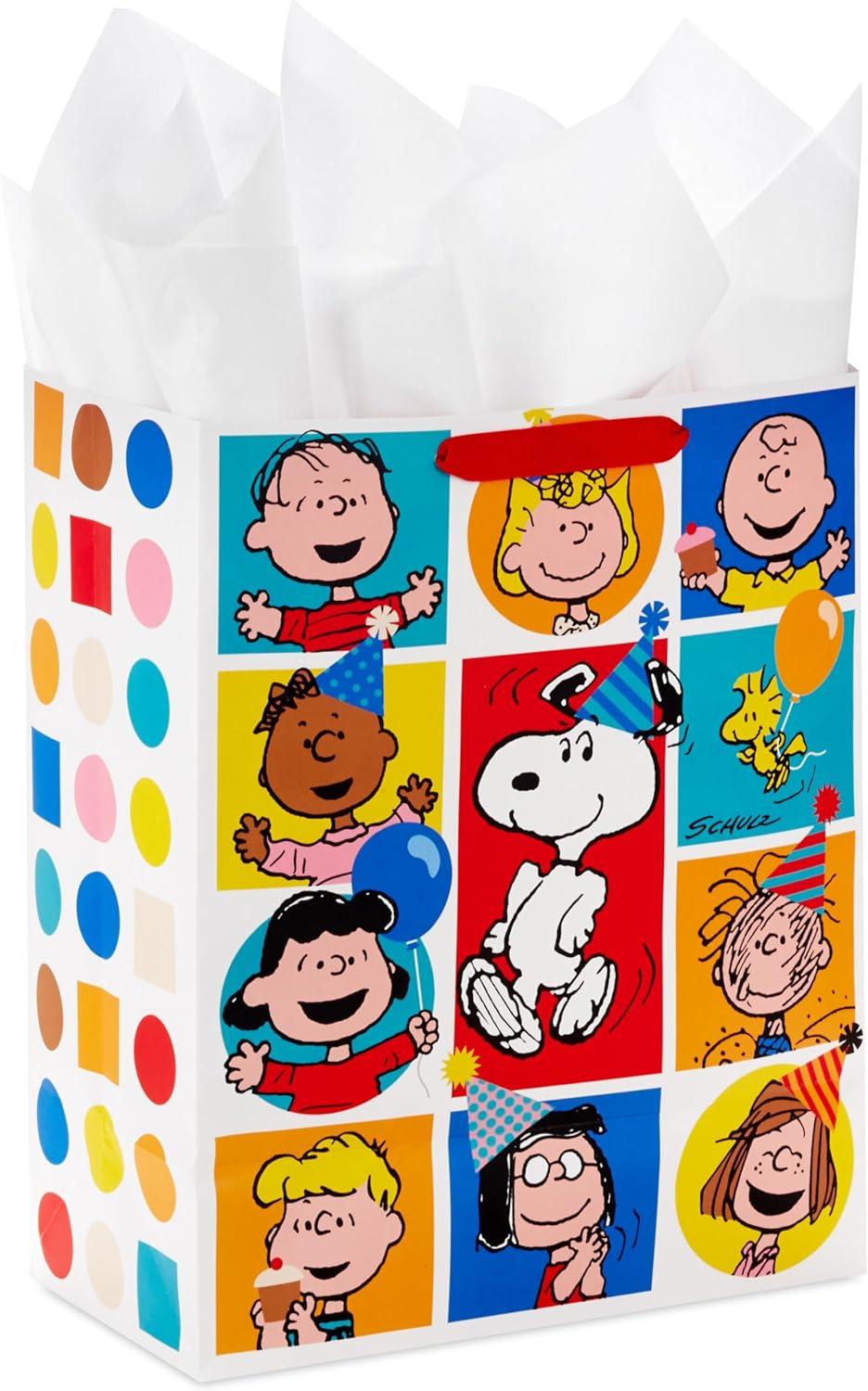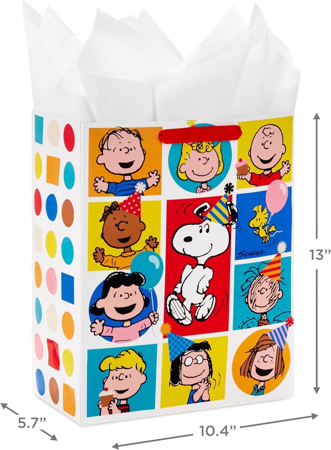 Hallmark Peanuts 13″ Large Gift Bag with Tissue Paper (Snoopy, Charlie Brown, Linus, Lucy) for Birthdays, Christmas, Fans(Peanuts Gang)