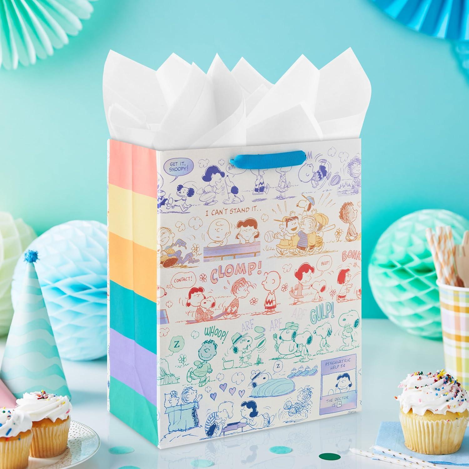 Hallmark Peanuts 13″ Large Gift Bag with Tissue Paper (Snoopy, Charlie Brown, Linus, Lucy) for Birthdays, Christmas, Fans(Rainbow Snoopy)