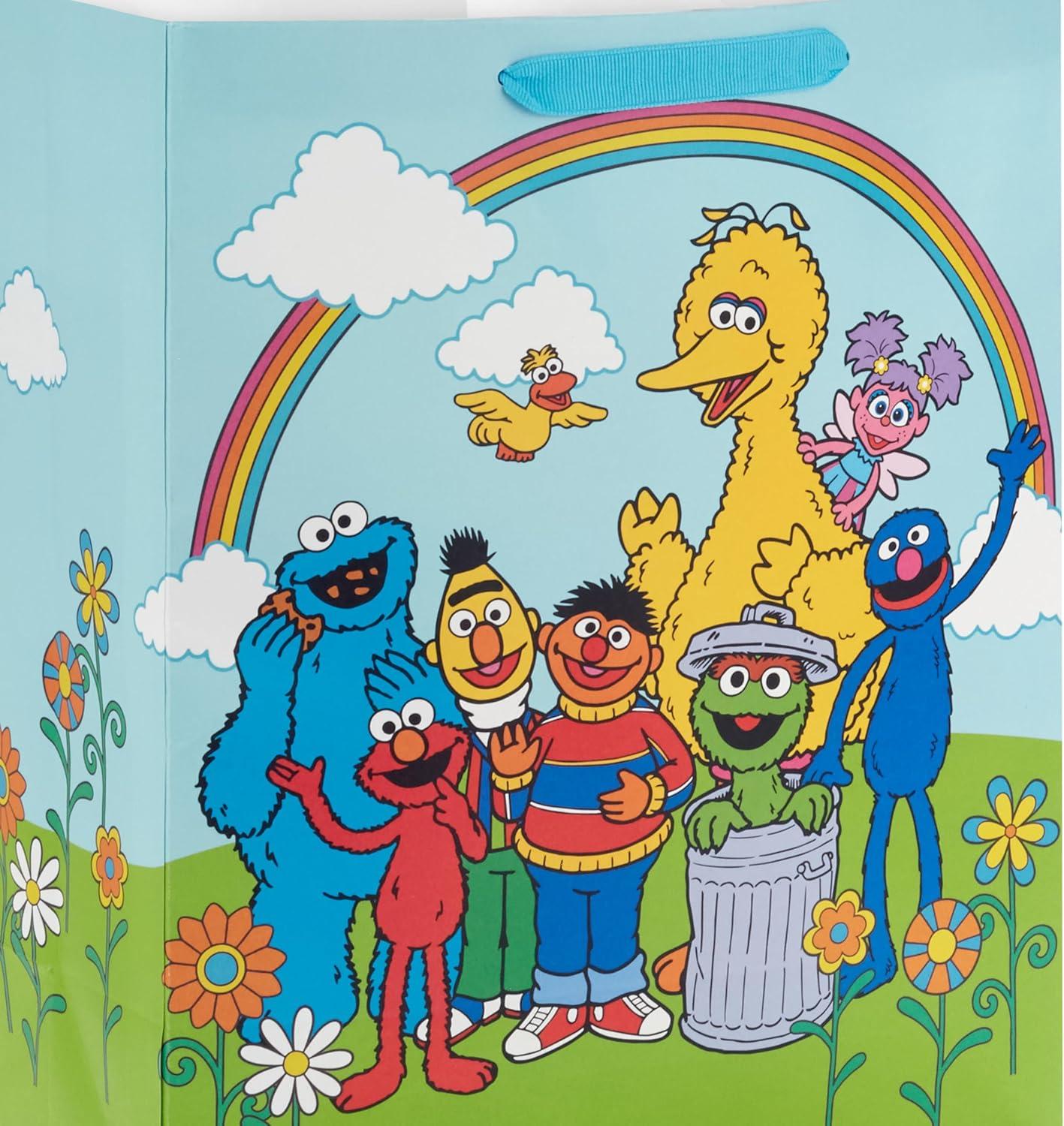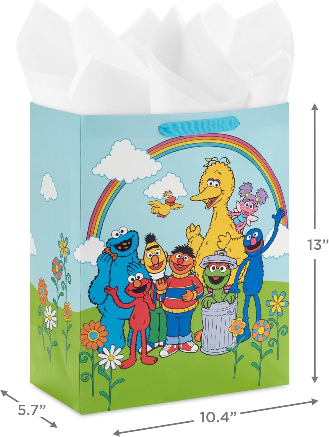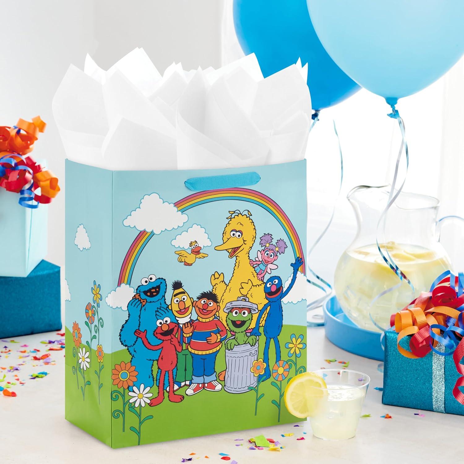 Hallmark Sesame Street 13″ Large Gift Bag with Tissue Paper (Big Bird, Elmo, Grover, Cookie Monster) for Birthdays, Christmas, Back to School(Sesame Street)