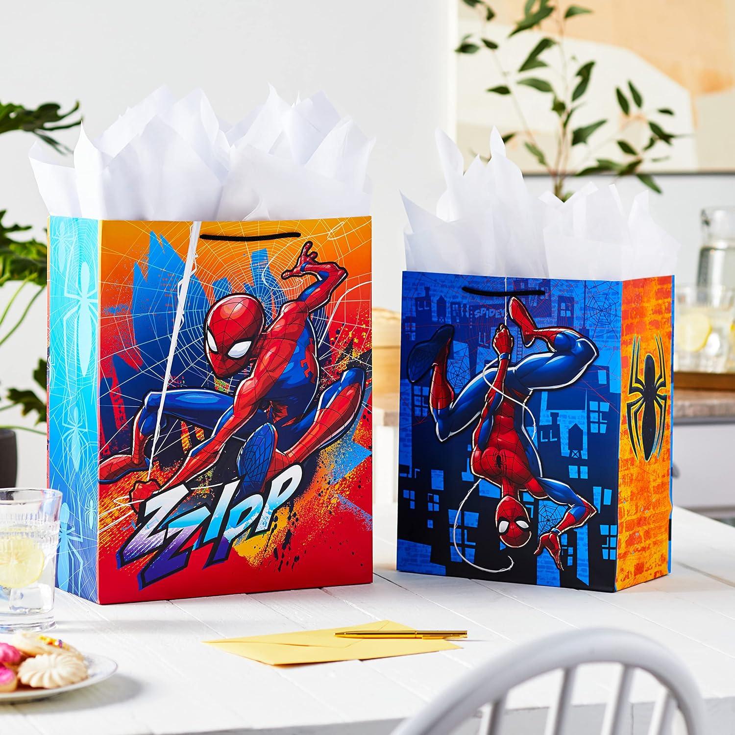 Hallmark Marvel Spider-Man Gift Bags (2 Bags: 1 Large 13″, 1 Extra Large 15″) for Birthdays, Halloween, Christmas, Kids Parties