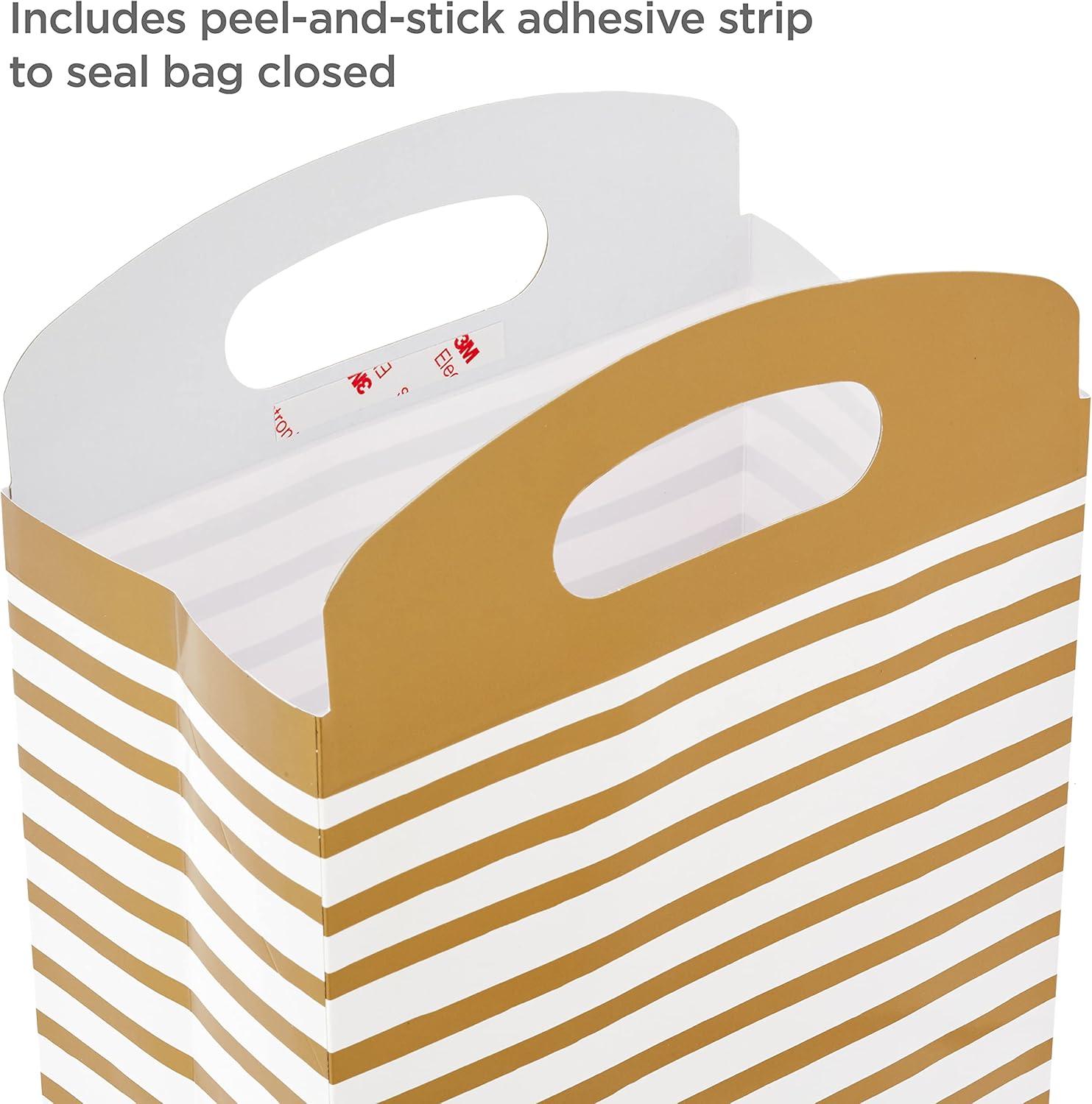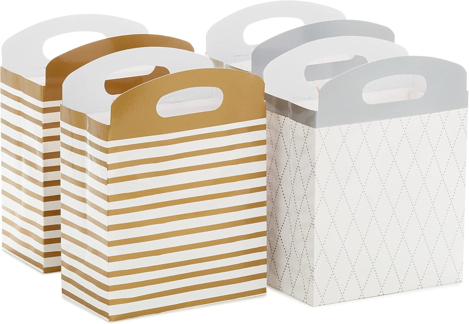 Hallmark Medium Self-Sealing Gift Bags with Handles (4 Bags, 2 Designs: Gold Stripes, Silver and White Diamonds) for Weddings, Anniversaries, Graduations, Any Occasion(Gold Stripes & Silver Diamonds)