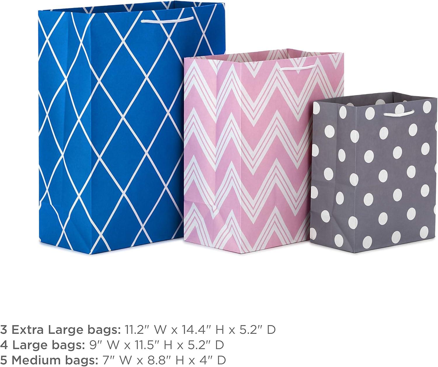 Hallmark Pastel Gift Bags in Assorted Sizes (Pack of 12-5 Medium 8″, 4 Large 11″, 3 Extra Large 14″) for Baby Showers, Bridal Showers, Birthdays, Easter(Pack of 2)