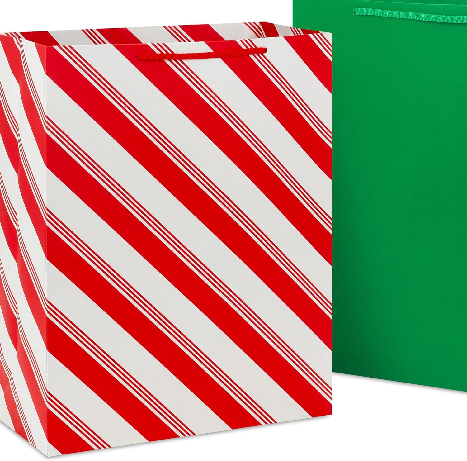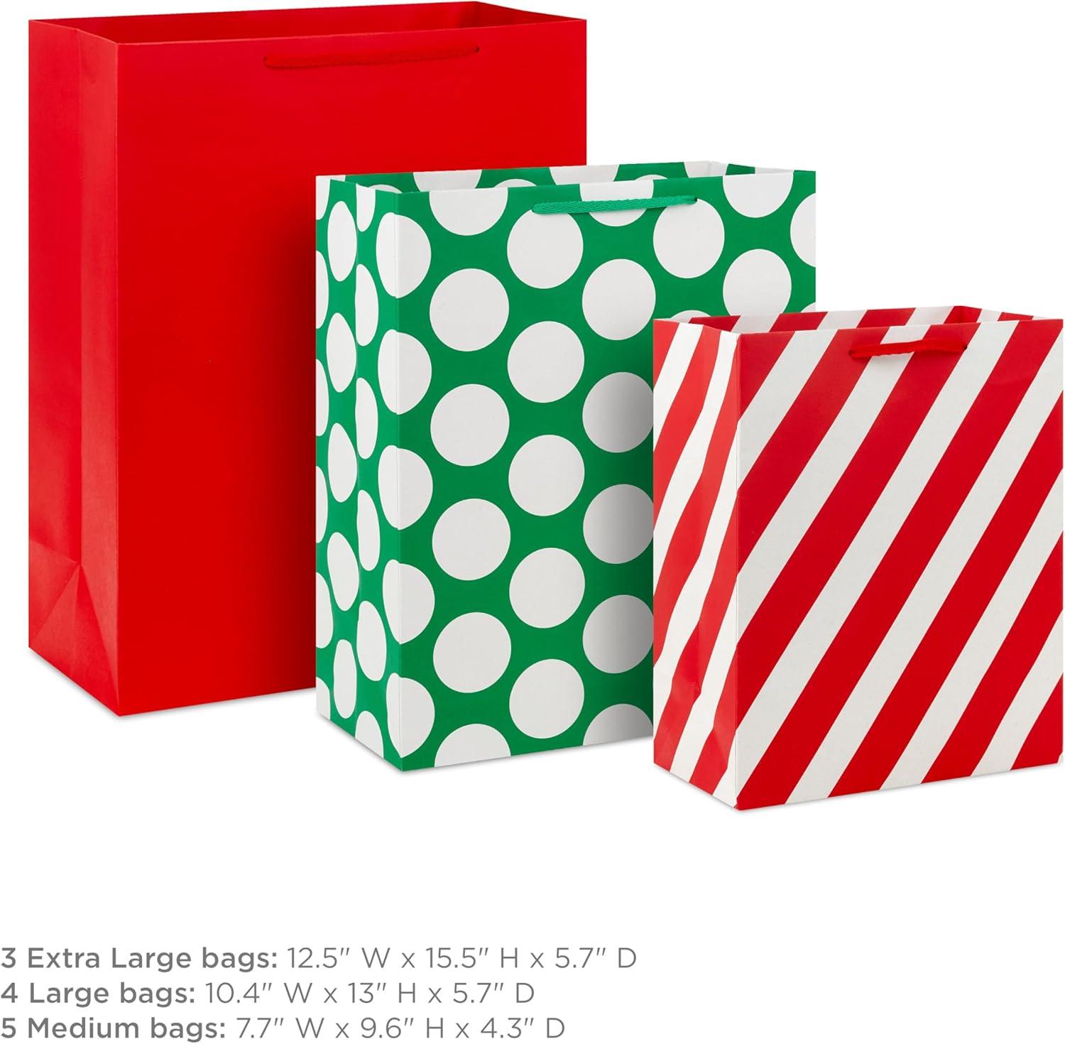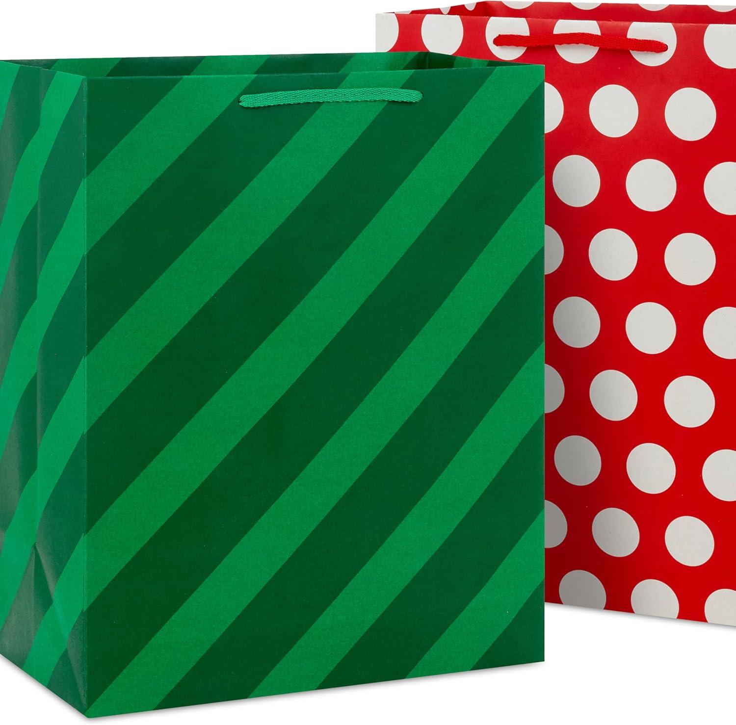 Hallmark Red Gift Bags in Assorted Sizes (Pack of 6: 2 Medium 9″, 2 Large 11″, 2 Extra Large 14″) for Christmas, Birthdays, Graduations, Father’s Day, Baby Showers, Bridal Showers, Weddings(Red Green Stripes Polka Dots)