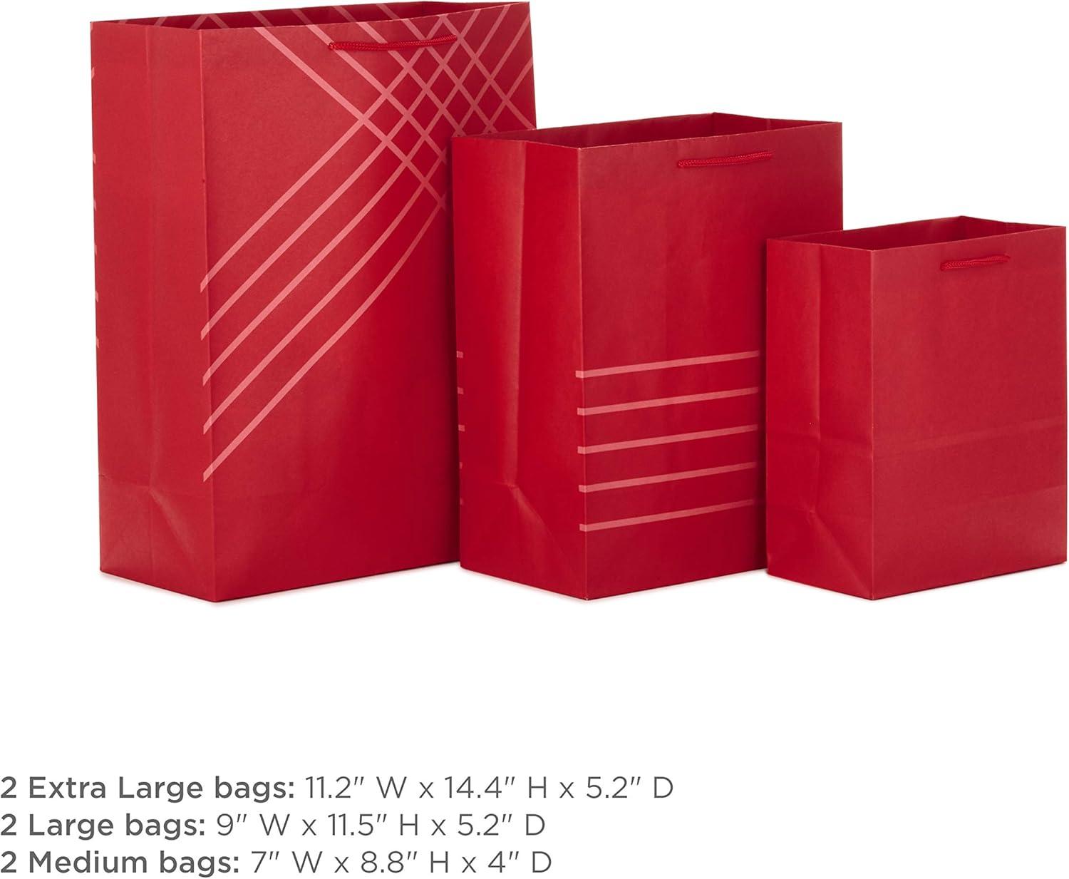 Hallmark Red Gift Bags in Assorted Sizes (Pack of 6: 2 Medium 9″, 2 Large 11″, 2 Extra Large 14″) for Christmas, Birthdays, Graduations, Father’s Day, Baby Showers, Bridal Showers, Weddings(Red)