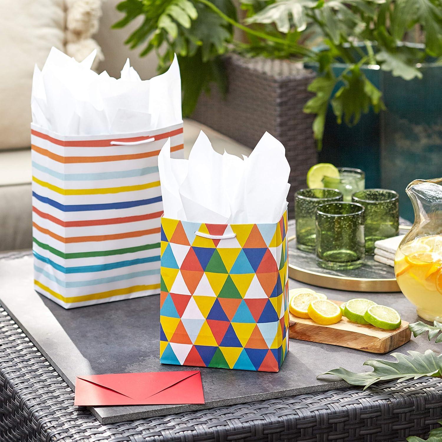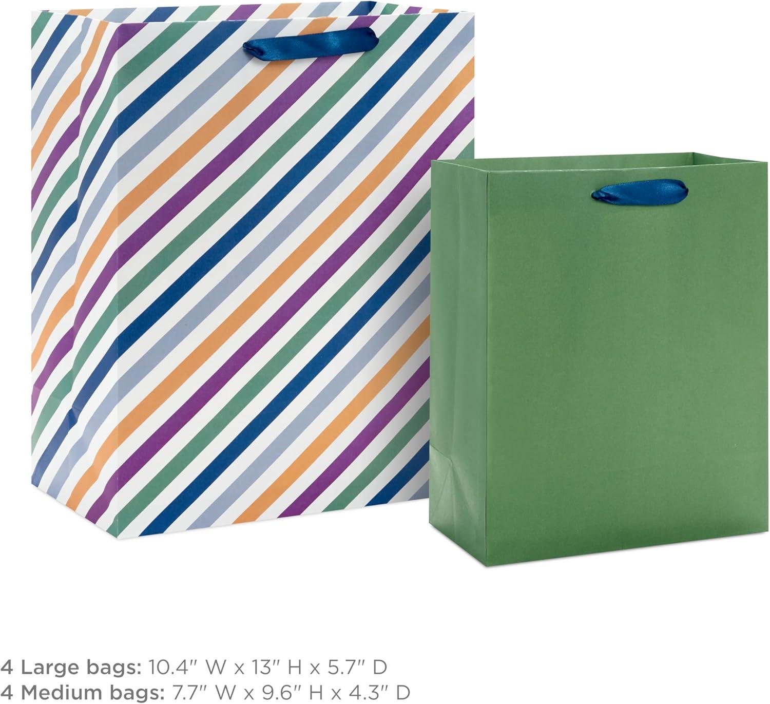 Hallmark Solid Gift Bag Assortment (8 Bags: 4 Medium 9″, 4 Large 13″) Blue, Green, Orange, Cheers, Stripes(Red Blue Yellow Green)